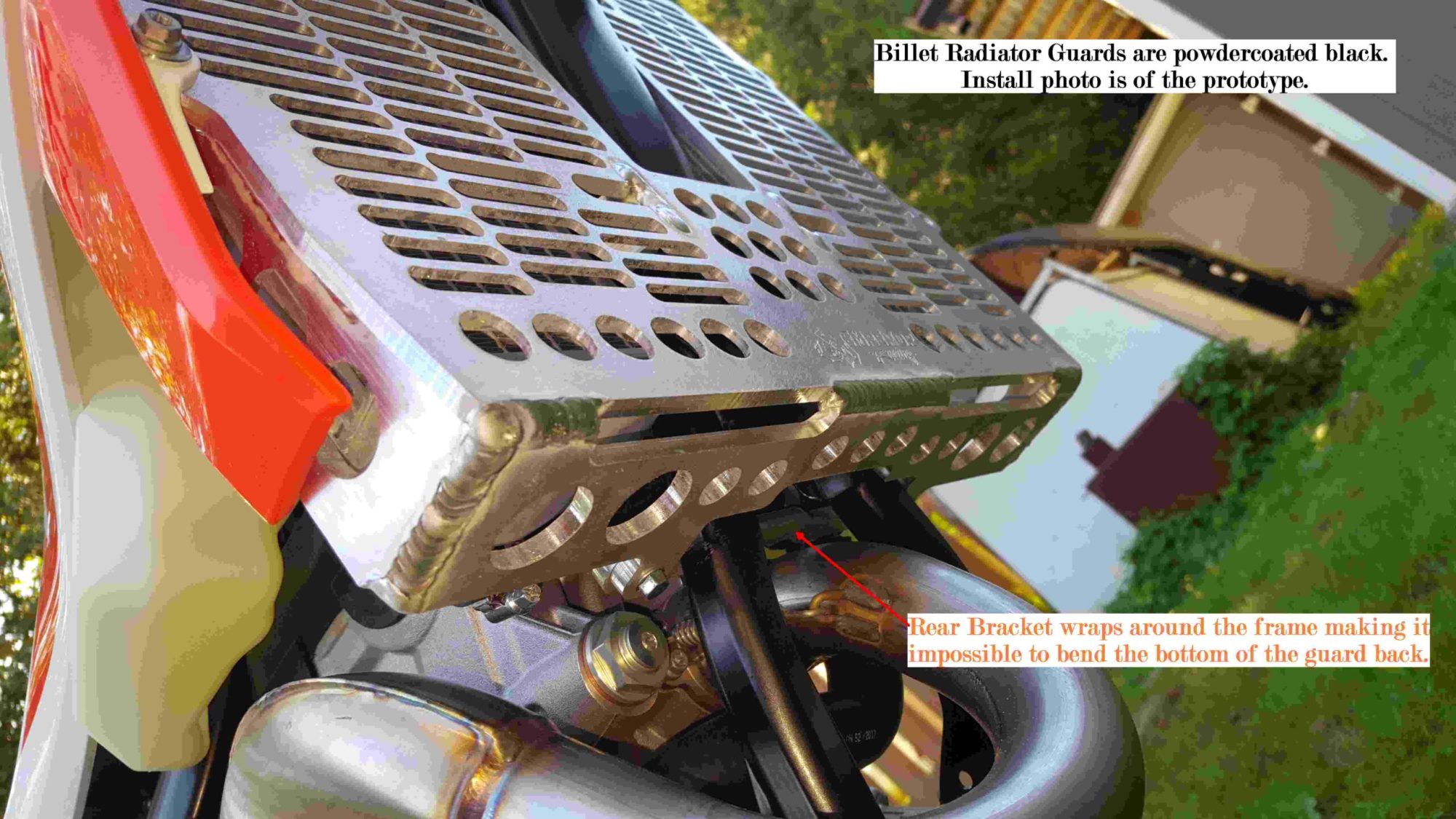 Do you want the best protection for your bike without having to worry about trimming plastic, complicated installation, making your bike feel wider, fitting over-sized rads, fuel tanks or fan kits? Check out our new patent-pending, one-piece Billet Radiator Guard.