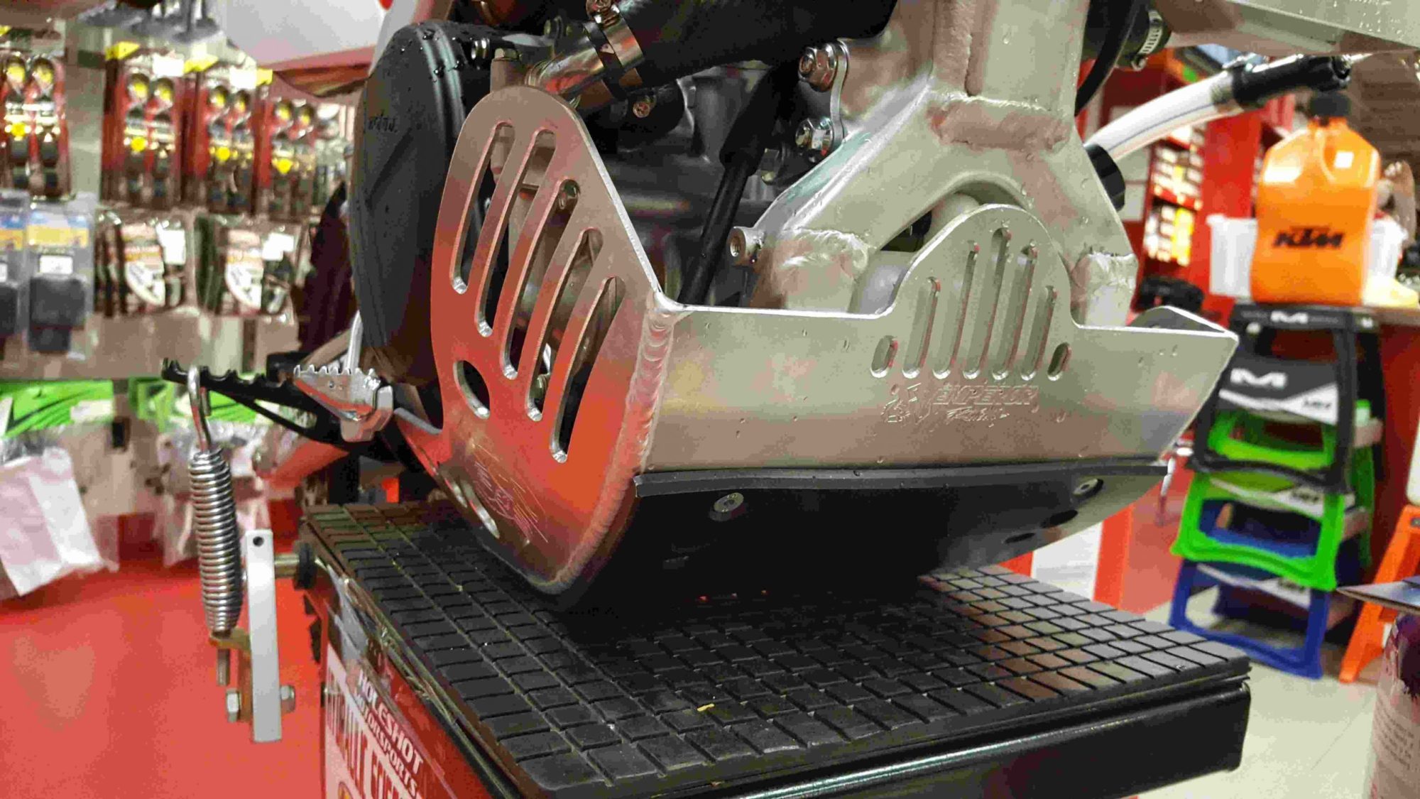 The Emperor Heavy Duty Skid Plate, in our opinion, is the best skid plate available on the market today. With a 3/16″ thick aluminum construction, hand Tig welded wings with an Emperor scorpion logo carved into each side for bling factor, aluminum mounting brackets and high-grade metric fasteners, you simply can’t go wrong. It also comes with 1/4″ thick x 3/4″ wide foam tape to place between the frame and skid plate for a nice snug fit that will eliminate any possible vibrations. This is the perfect product for the hardcore off-road rider.