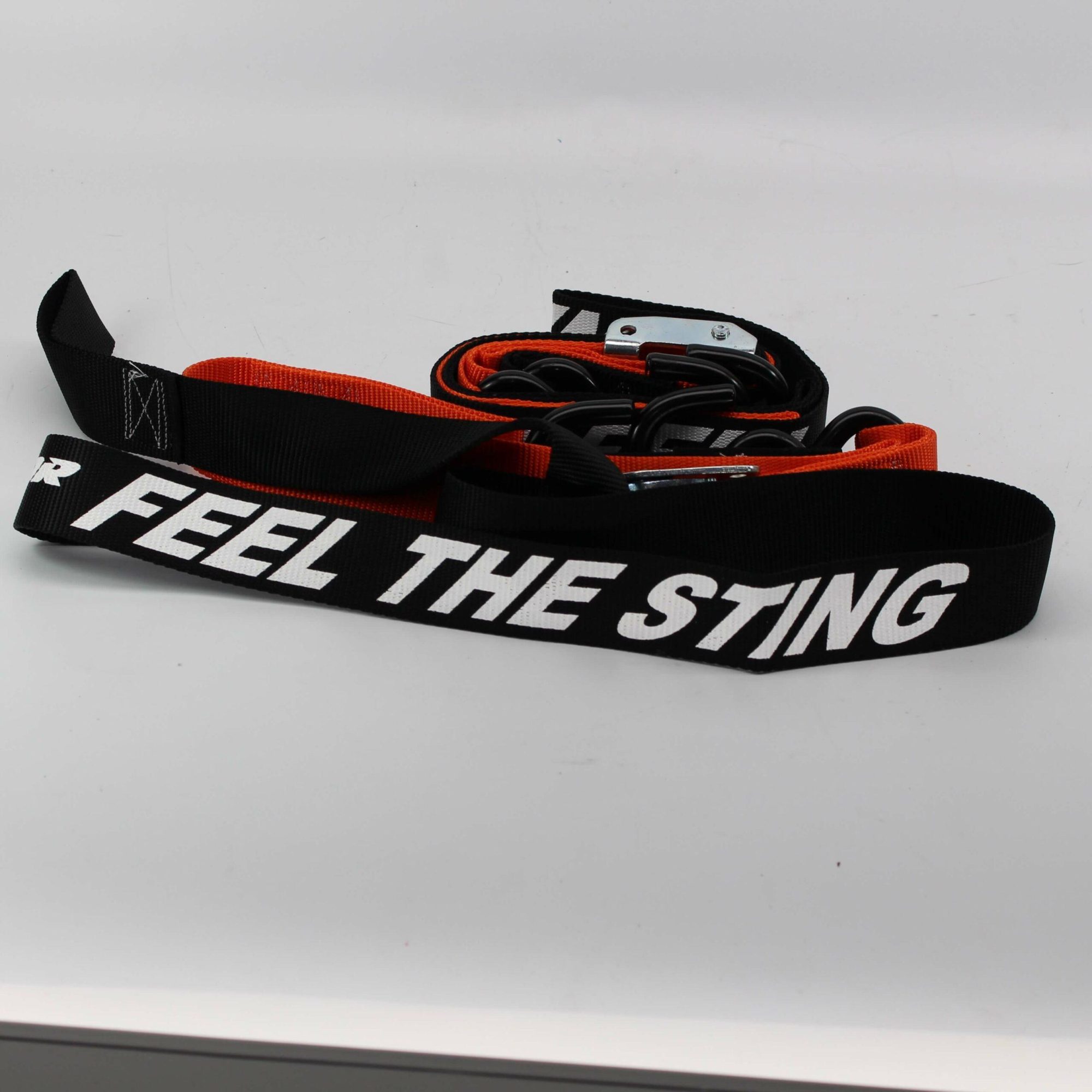 1.5″ wide, soft hook, cam buckle tie downs.