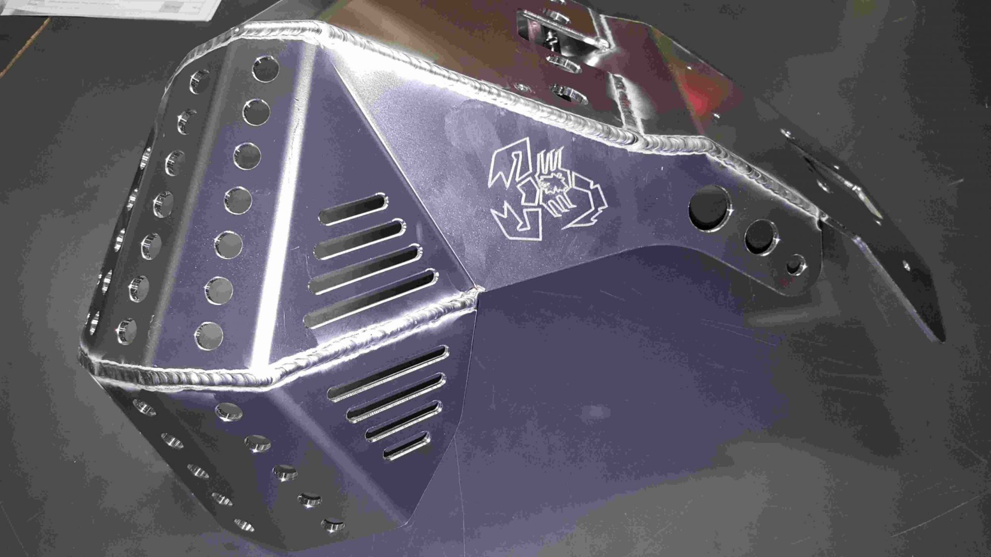 • MANUFACTURED OUT OF HIGH GRADE 3/16″ ALUMINUM MAKES THE EMPEROR HEAVY DUTY SKID PLATE ARGUABLY THE STRONGEST SKID PLATE AVAILABLE NOW WITH AN EXTENDED FRONT THAT PROTECTS THE 2 STROKE EXHAUST PIPE