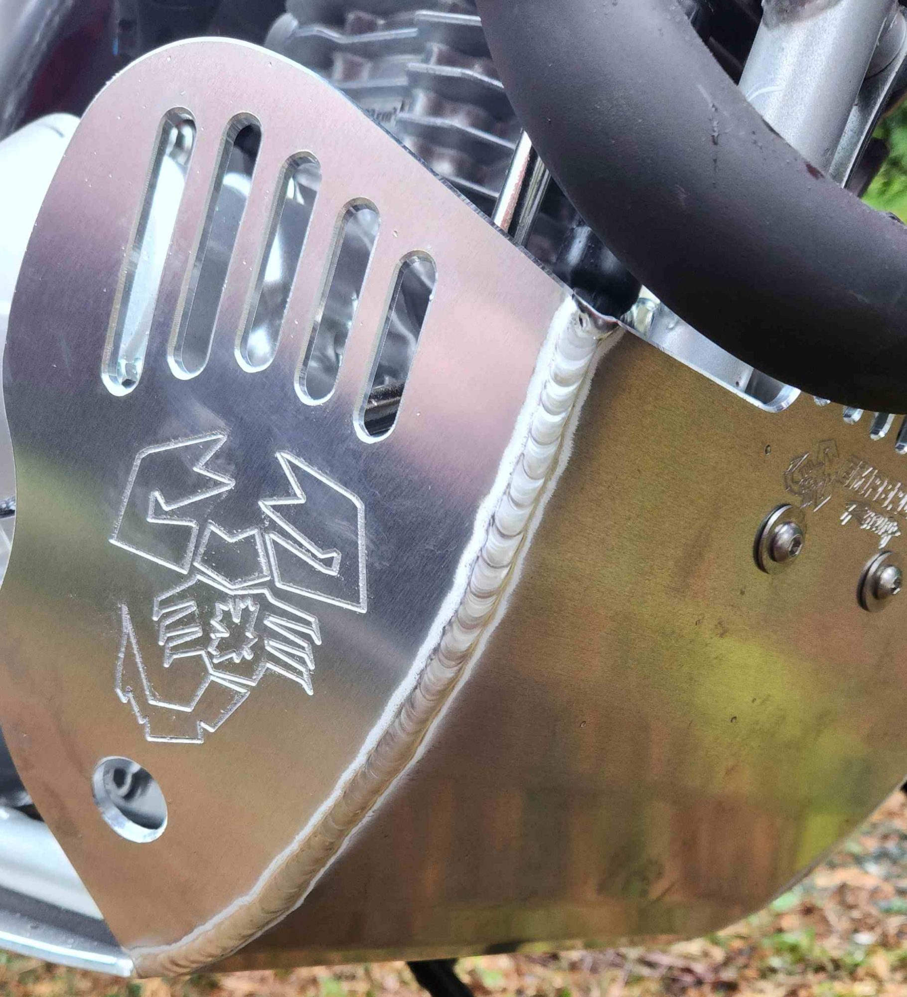 The Emperor Heavy Duty Skid Plate, in our opinion, is the best skid plate available on the market today. With a 3/16″ thick aluminum construction, hand Tig welded wings with an Emperor scorpion logo carved into each side for bling factor, aluminum mounting brackets and high-grade metric fasteners, you simply can’t go wrong. It also comes with 1/4″ thick x 3/4″ wide foam tape to place between the frame and skid plate for a nice snug fit that will eliminate any possible vibrations. This is the perfect product for the hard-core off-road rider.