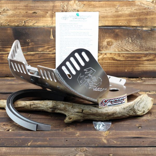 The Emperor Heavy Duty Skid Plate, in our opinion, is the best skid plate available on the market today. With a 3/16″ thick aluminum construction, hand Tig welded wings with an Emperor scorpion logo carved into each side for the bling factor, aluminum mounting brackets and high-grade metric fasteners, you simply can’t go wrong. It also comes with 1/4″ thick x 3/4″ wide foam tape to place between the frame and skid plate for a nice snug fit that will eliminate any possible vibrations. This is the perfect product for the hardcore off-road rider.