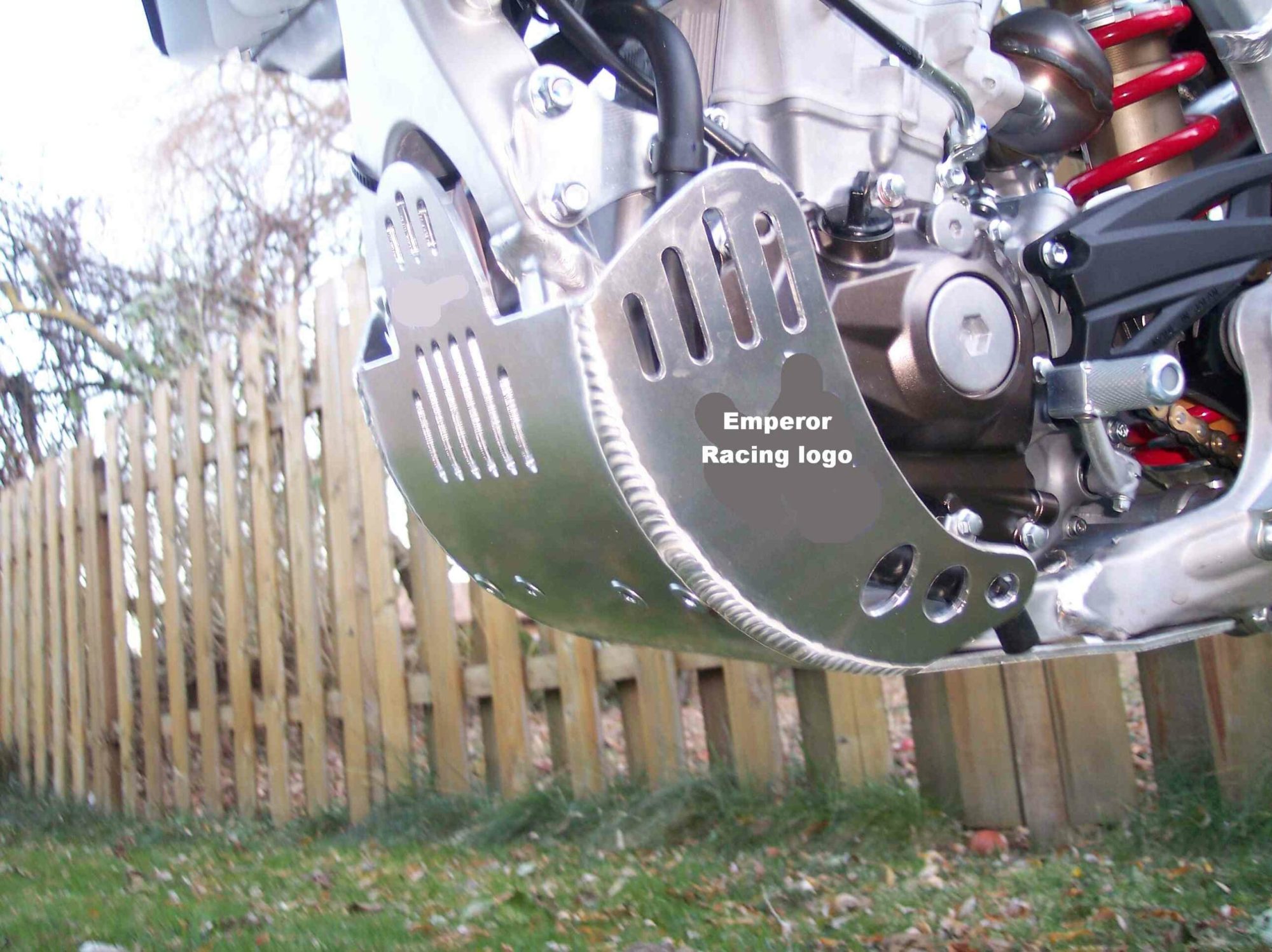 The Emperor Heavy Duty Skid Plate, in our opinion, is the best skid plate available on the market today. With a 3/16″ thick aluminum construction, hand Tig welded wings with an Emperor scorpion logo carved into each side for bling factor, aluminum mounting brackets and high-grade metric fasteners, you simply can’t go wrong. It also comes with 1/4″ thick x 3/4″ wide foam tape to place between the frame and skid plate for a nice snug fit that will eliminate any possible vibrations. And to complete the ultimate package, a block of open cell foam is also supplied to place between the skid plate and the engine to reduce the build up of material between the skid plate and engine case. This is the perfect product for the hard core off road rider.