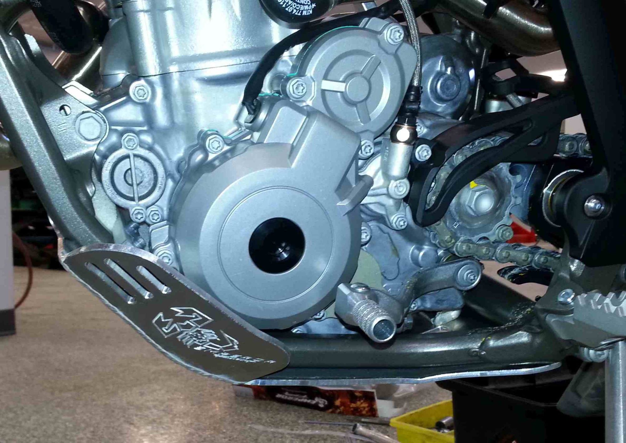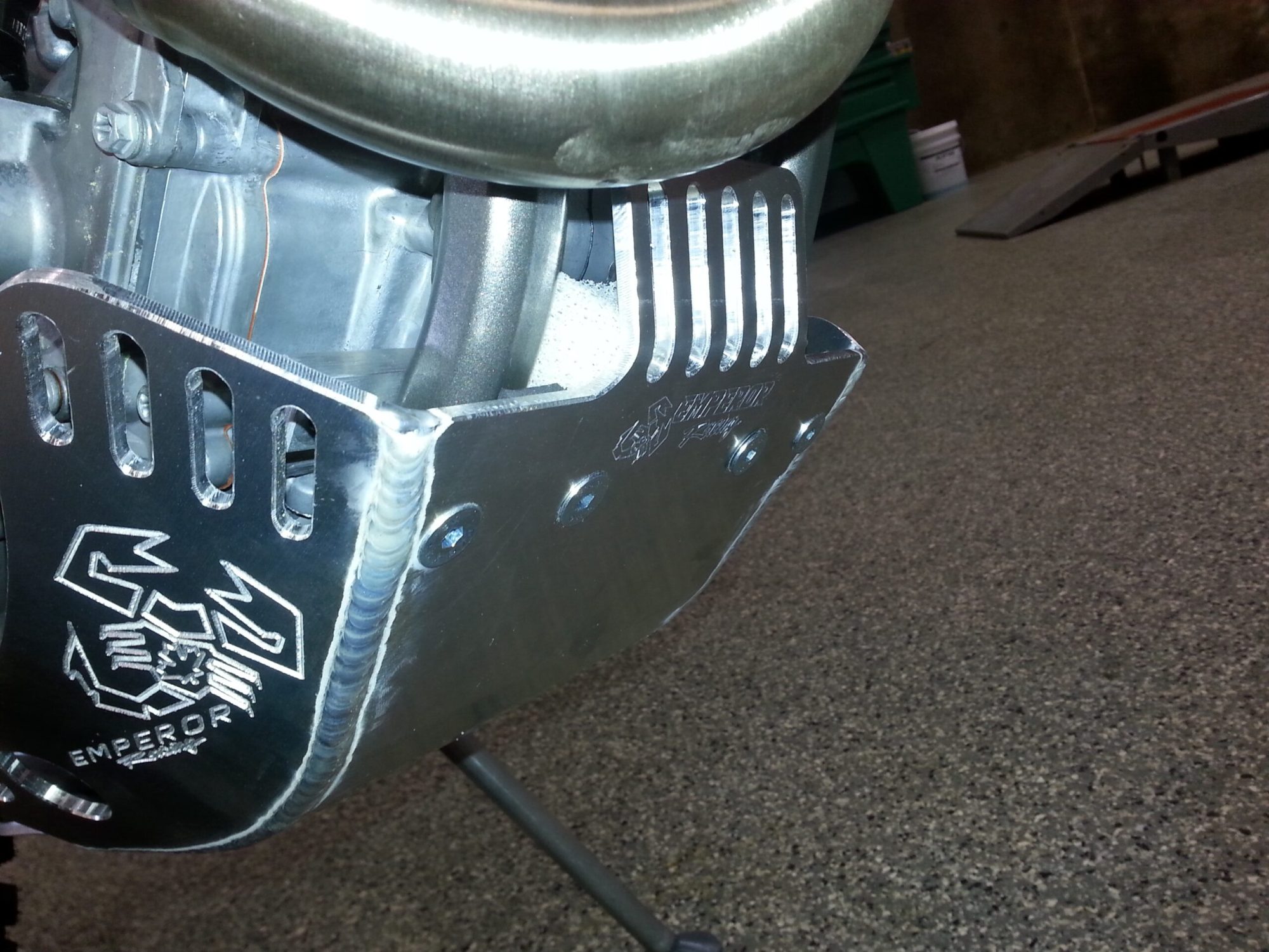 The Emperor Heavy Duty Skid Plate, in our opinion, is the best skid plate available on the market today. With a 3/16″ thick aluminum construction, hand Tig welded wings with an Emperor scorpion logo carved into each side for bling factor, aluminum mounting brackets and high-grade metric fasteners, you simply can’t go wrong. It also comes with 1/4″ thick x 3/4″ wide foam tape to place between the frame and skid plate for a nice snug fit that will eliminate any possible vibrations. And to complete the ultimate package, a block of open cell foam is also supplied to place between the skid plate and the engine to reduce the build up of material between the skid plate and engine case. This is the perfect product for the hard core off road rider.