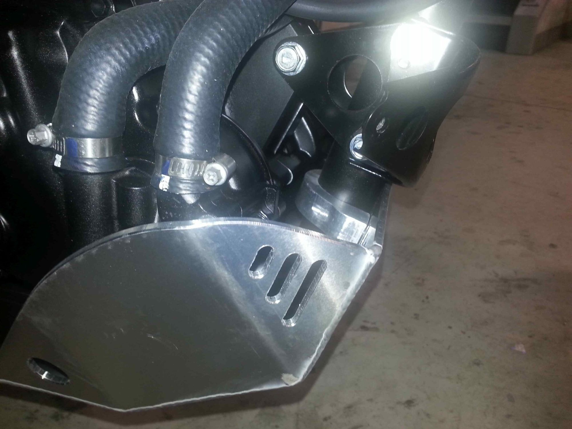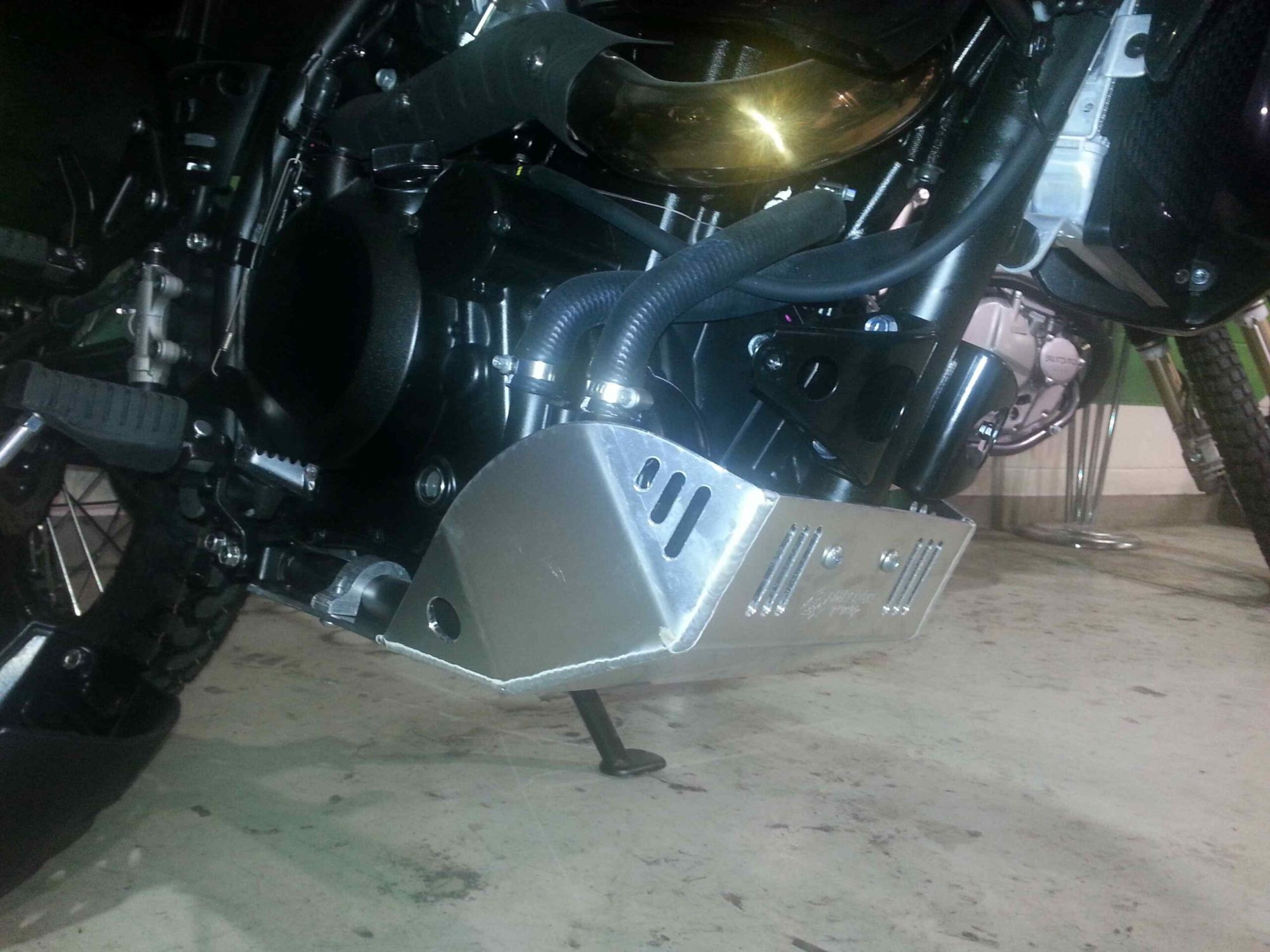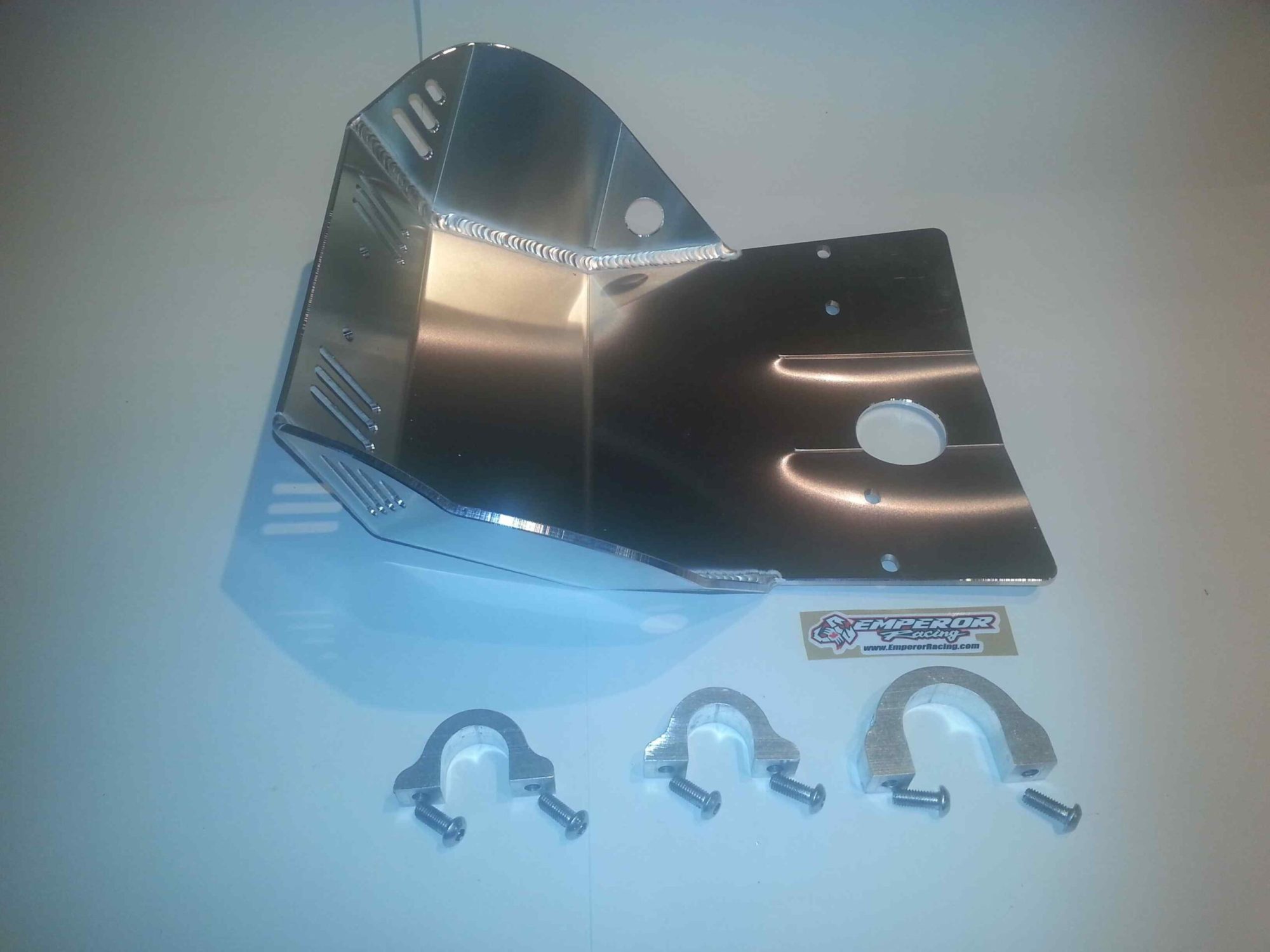 The Emperor Heavy Duty Skid Plate, in our opinion, is the best skid plate available on the market today. With a 3/16″ thick aluminum construction, hand Tig welded wings with an Emperor scorpion logo carved into each side for bling factor, aluminum mounting brackets and high-grade metric fasteners, you simply can’t go wrong. It also comes with 1/4″ thick x 3/4″ wide foam tape to place between the frame and skid plate for a nice snug fit that will eliminate any possible vibrations. And to complete the ultimate package, a block of open cell foam is also supplied to place between the skid plate and the engine to reduce the build up of material between the skid plate and engine case. This is the perfect product for the hard core off road rider.