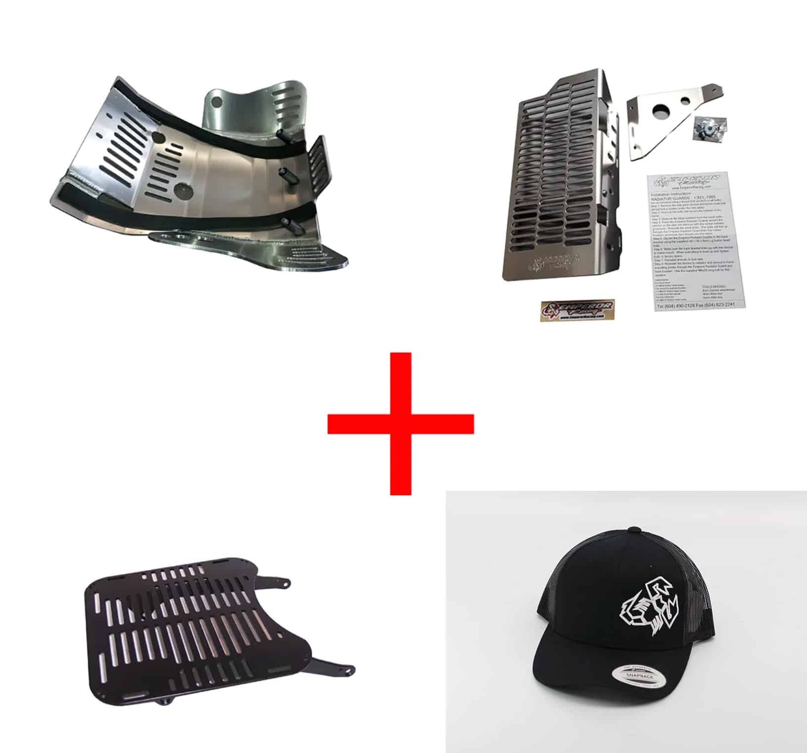 The Emperor Heavy Duty Skid Plate, in our opinion, is the best skid plate available on the market today. With a 3/16″ thick aluminum construction, hand Tig welded wings with an Emperor scorpion logo carved into each side for bling factor, aluminum mounting brackets and high-grade metric fasteners, you simply can’t go wrong. It also comes with 1/4″ thick x 3/4″ wide foam tape to place between the frame and skid plate for a nice snug fit that will eliminate any possible vibrations. This is the perfect product for the hard core off road rider.