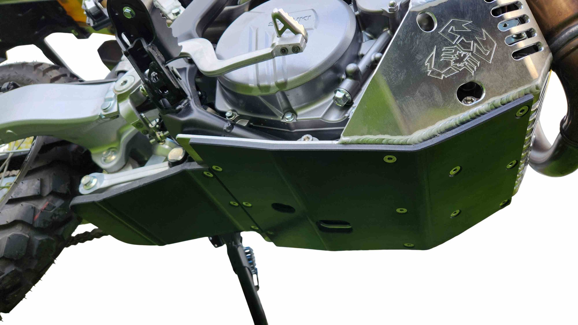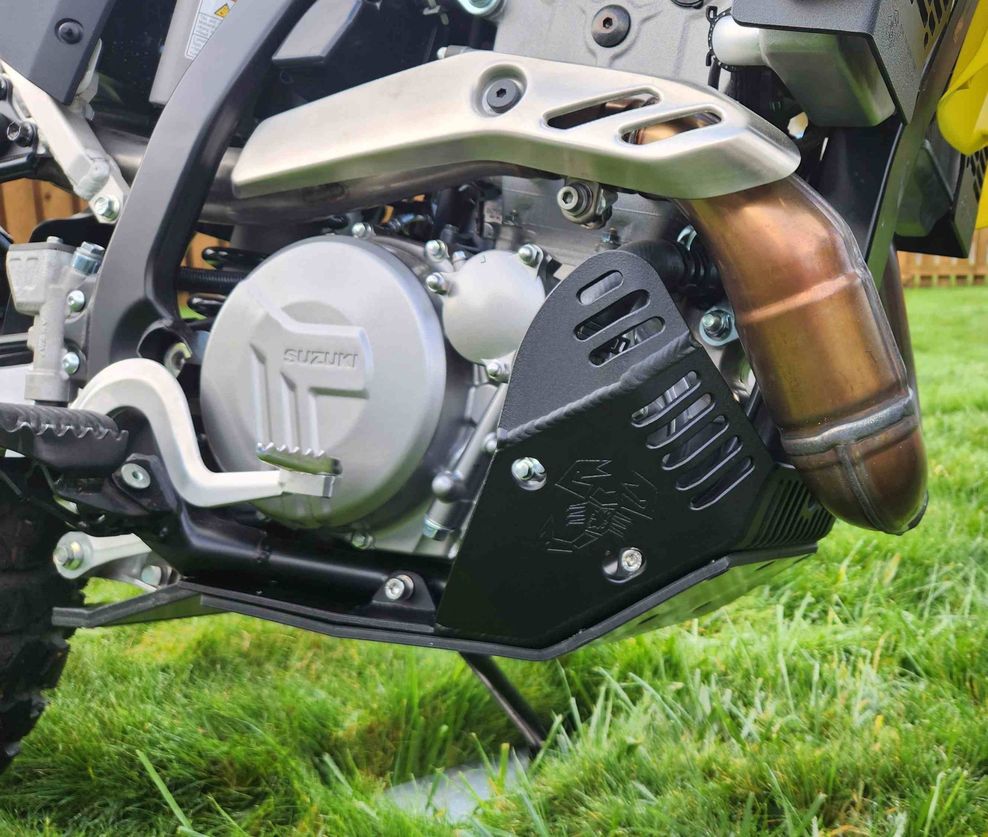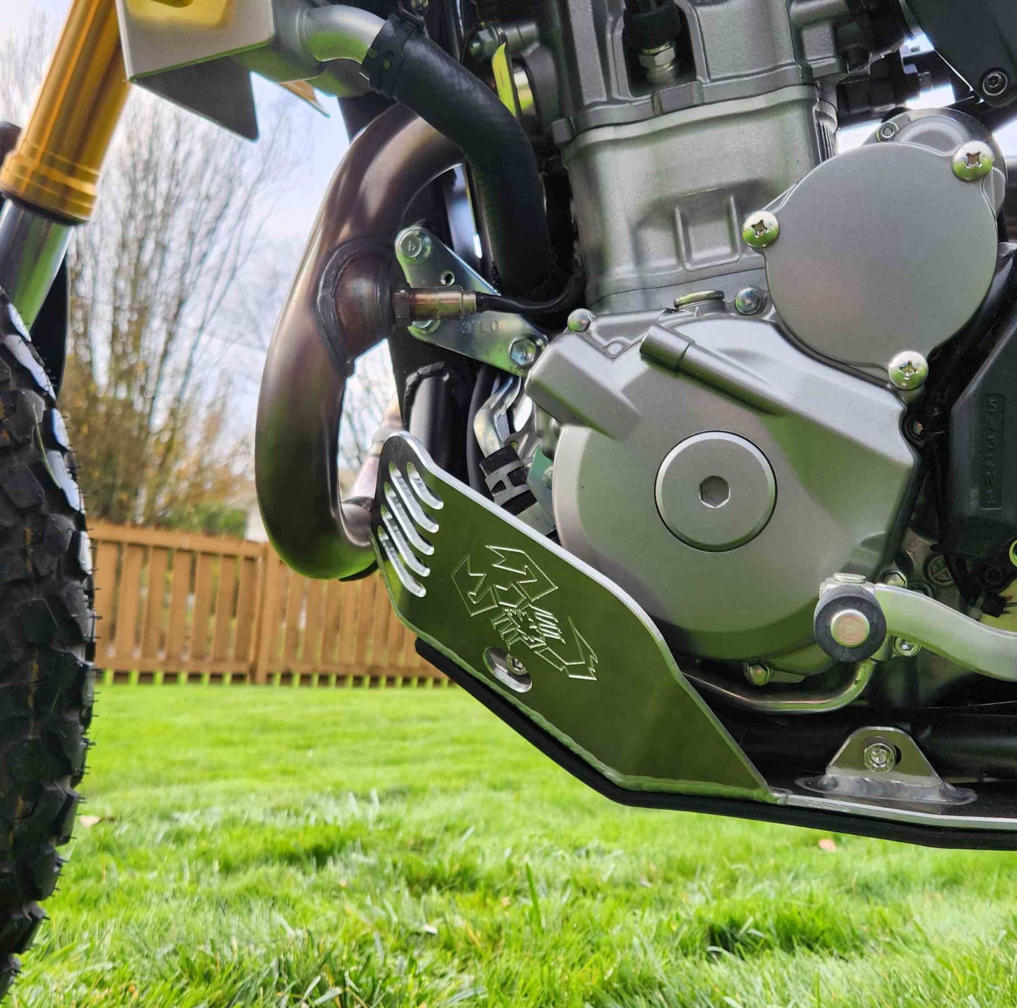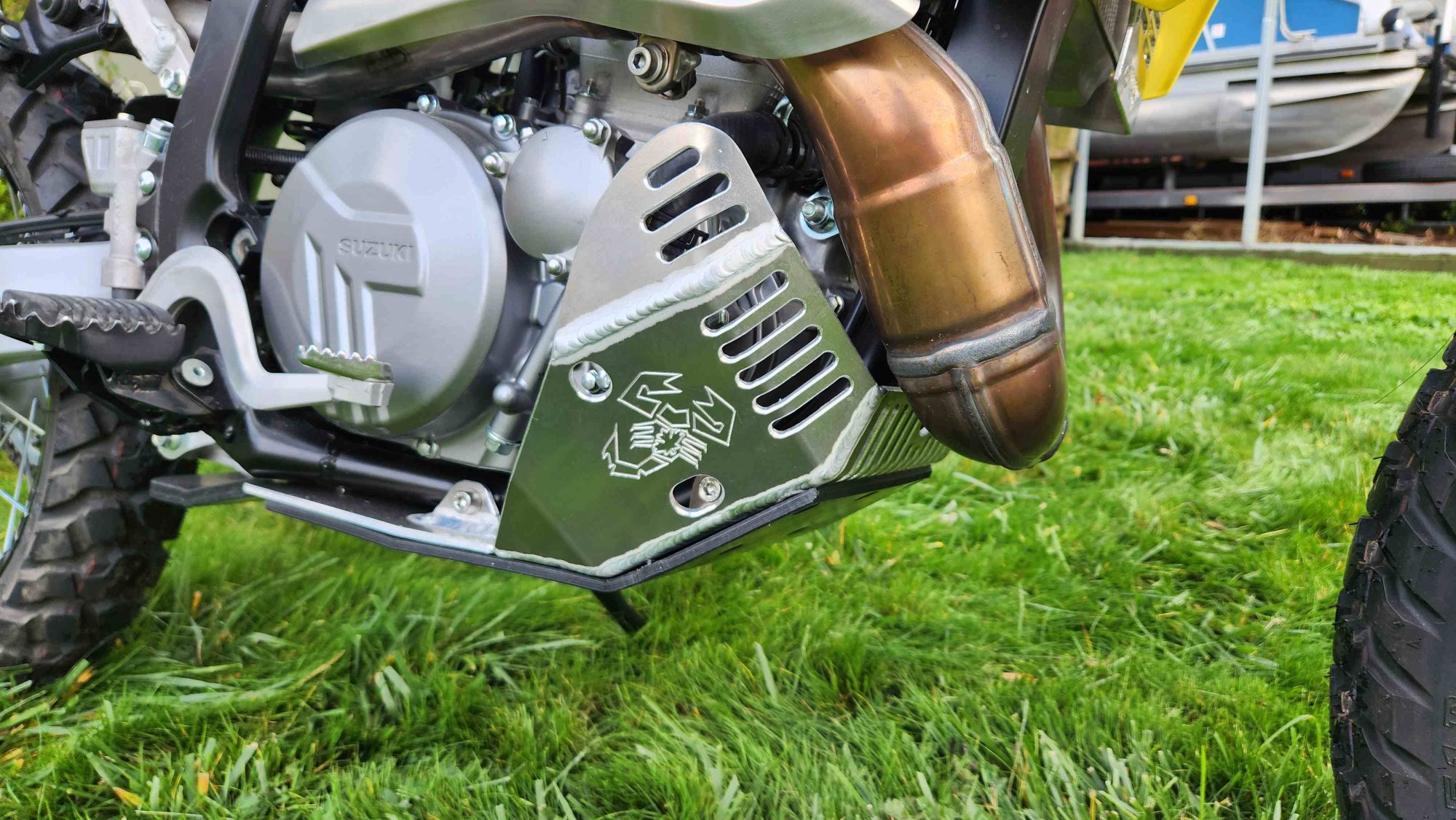 The Emperor Heavy Duty Skid Plate, in our opinion, is the best skid plate available on the market today. With a 3/16″ thick aluminum construction, hand Tig welded wings with an Emperor scorpion logo carved into each side for bling factor, aluminum mounting brackets and high-grade metric fasteners, you simply can’t go wrong. It also comes with 1/4″ thick x 3/4″ wide foam tape to place between the frame and skid plate for a nice snug fit that will eliminate any possible vibrations. This is the perfect product for the hard-core off-road rider.