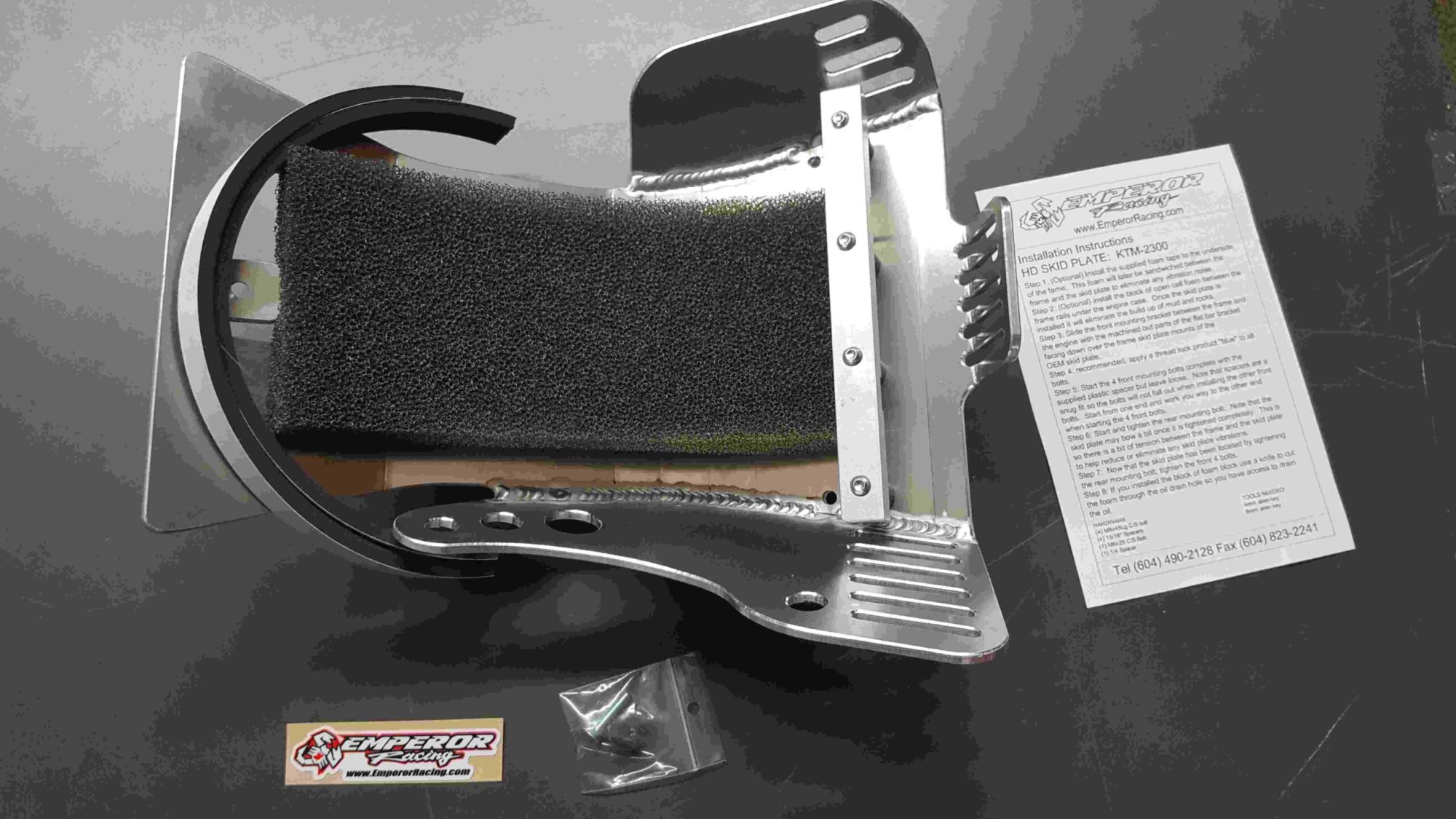 The Emperor Heavy Duty Skid Plate, in our opinion, is the best skid plate available on the market today. With a 3/16″ thick aluminum construction, hand Tig welded wings with an Emperor scorpion logo carved into each side for bling factor, aluminum mounting brackets and high-grade metric fasteners, you simply can’t go wrong. It also comes with 1/4″ thick x 3/4″ wide foam tape to place between the frame and skid plate for a nice snug fit that will eliminate any possible vibrations. And to complete the ultimate package, a block of open cell foam is also supplied to place between the skid plate and the engine to reduce the build-up of material between the skid plate and engine case. This is the perfect product for the hardcore off-road rider.
