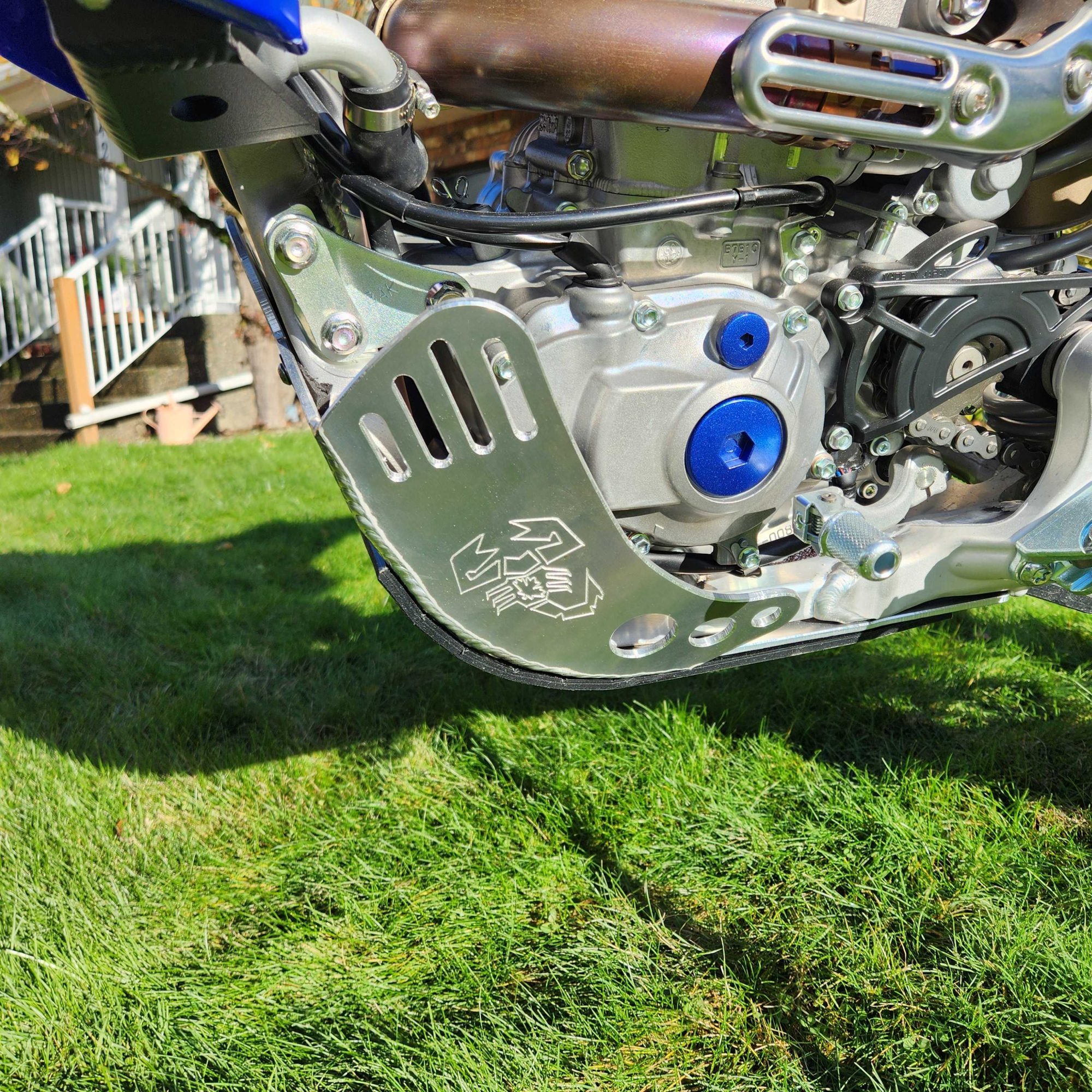 The Emperor Heavy Duty Skid Plate, in our opinion, is the best skid plate available on the market today. With a 3/16″ thick aluminum construction, hand Tig welded wings with an Emperor scorpion logo carved into each side for the bling factor, aluminum mounting brackets and high-grade metric fasteners, you simply can’t go wrong. It also comes with 1/4″ thick x 3/4″ wide foam tape to place between the frame and skid plate for a nice snug fit that will eliminate any possible vibrations. And to complete the ultimate package, a block of open cell foam is also supplied to place between the skid plate and the engine to reduce the buildup of material between the skid plate and engine case. This is the perfect product for the hard-core off-road rider.