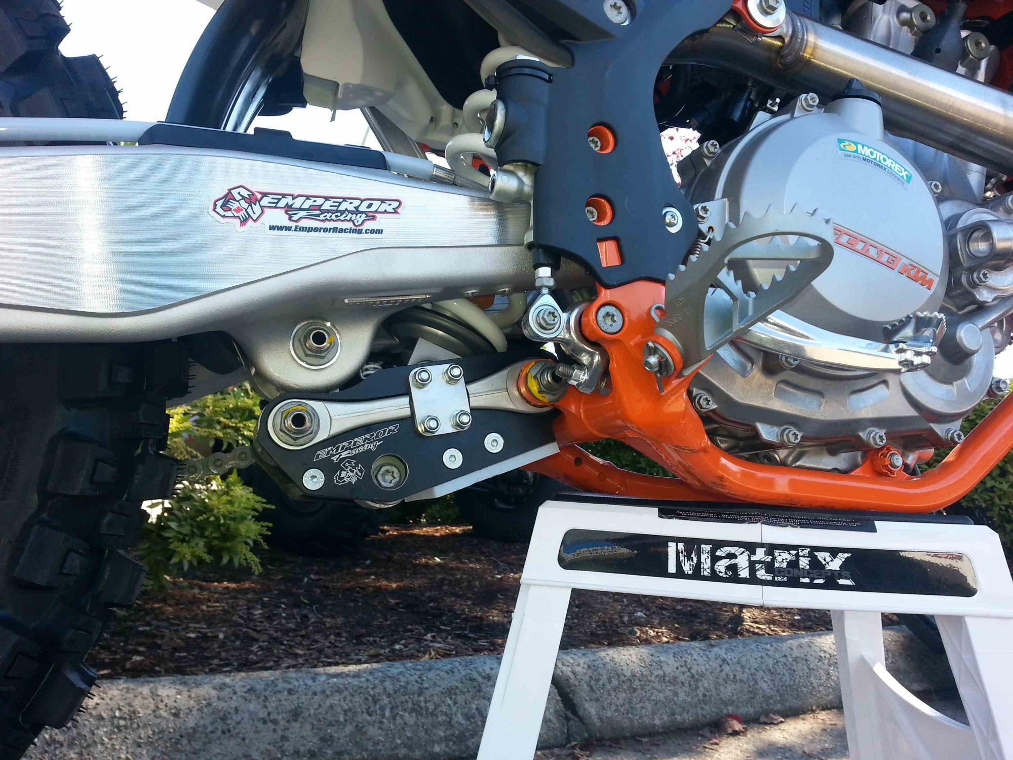 Emperor Linkage Guard, is the best protection for your linkage suspension. Protect your shock and linkage from getting smashed on rocks and also protect yourself from going over the bars when the low hanging linkage gets hooked on a rock or log.