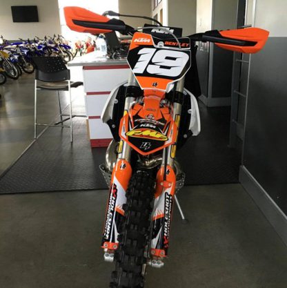 DESIGNED FOR THE STOCK KTM PIPE The Emperor Heavy Duty Pipe Guard Skid Plate is the best skid plate available on the market today. With a 3/16” thick aluminum construction, hand Tig welded wings (full length both sides) with a Emperor logo carved into each side for the bling factor, aluminum mounting brackets and high-grade metric fasteners, you simply can’t go wrong. But now we have made it even better by offering a pipe guard version for all the 2 stroke fans out there. It still has all the standard extras like 1/4″ thick x 3/4″ wide foam tape to place between the frame and skid plate for a nice snug fit that will eliminate any possible vibrations, a block of open cell foam is also supplied to place between the skid plate and the engine to reduce the build up of material between the skid plate and engine case. This is the perfect product for the hard core 2 stroke loving off-road rider.