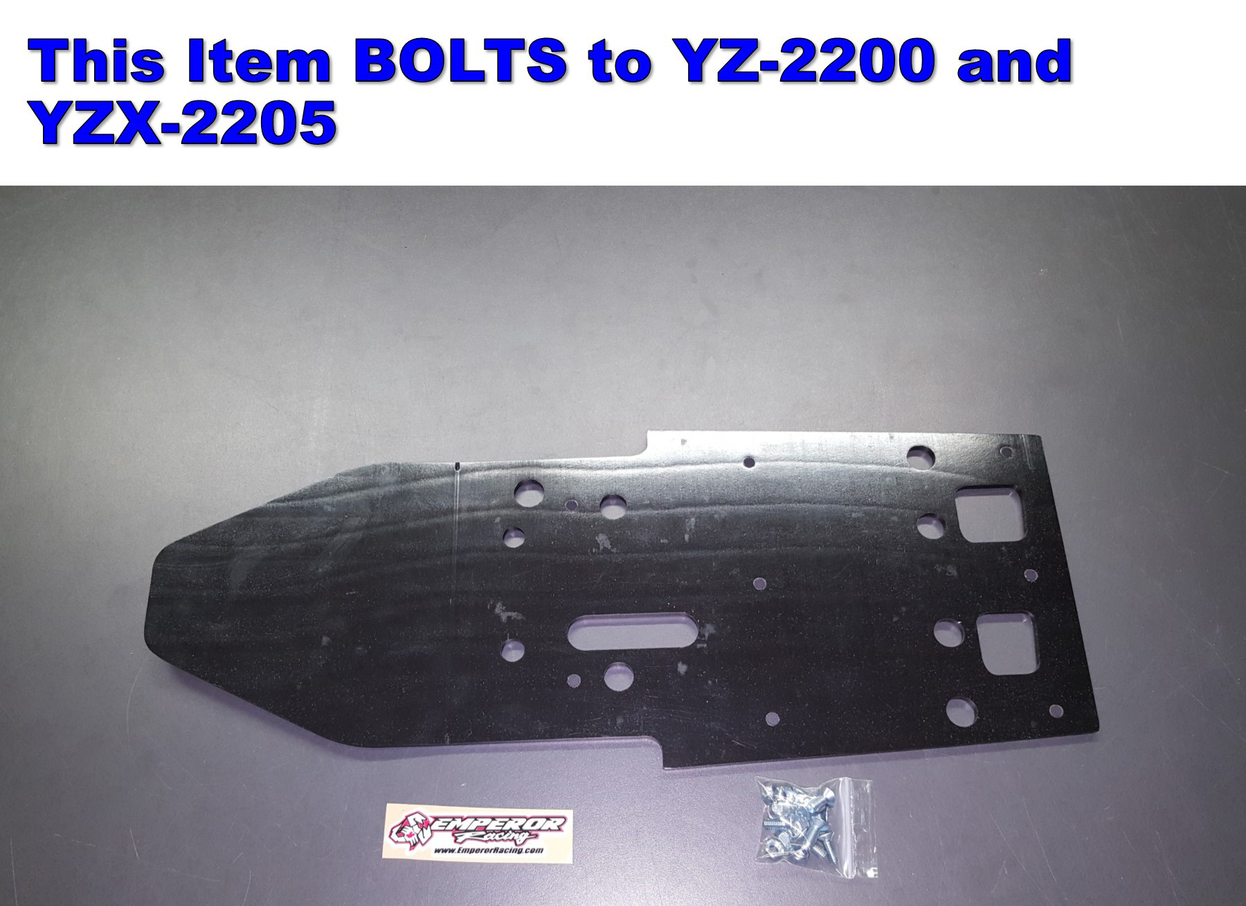 Slide over rocks and logs with ease while at the same time protecting your suspension linkage. This product can be used with or without the Emperor Racing linkage guard or with any other brand of aluminum linkage guard. (bolts to HD Pipe Guard Skid Plate YZ-2200, YZ-2205)