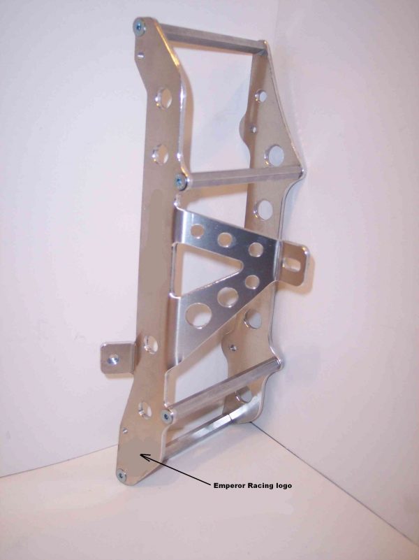 Do you want to protect your radiator without blocking the front and possibly reducing airflow? If yes, then put a frame around it. The Emperor Radiator Frame, constructed out of 3/16″ aluminum and 11mm hex bar for the cross supports and yes, you still get to run your stock radiator louvers for maximum airflow. This is the ultimate in side impact protection for your radiator.