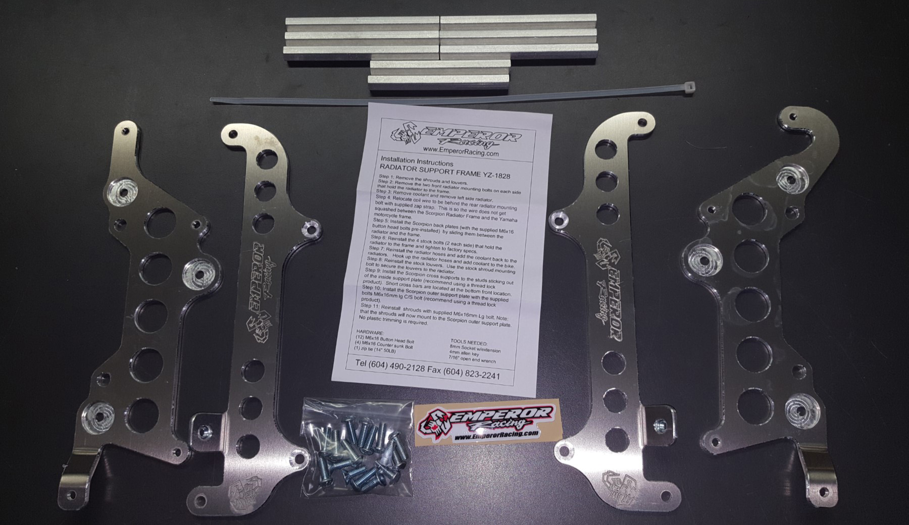 Do you want to protect your radiator without blocking the front and possibly reducing airflow? If yes, then put a frame around it. The Emperor Radiator Frame, constructed out of 3/16″ aluminum and 11mm hex bar for the cross supports and yes, you still get to run your stock radiator louvers for maximum airflow. This is the ultimate in side impact protection for your radiator.