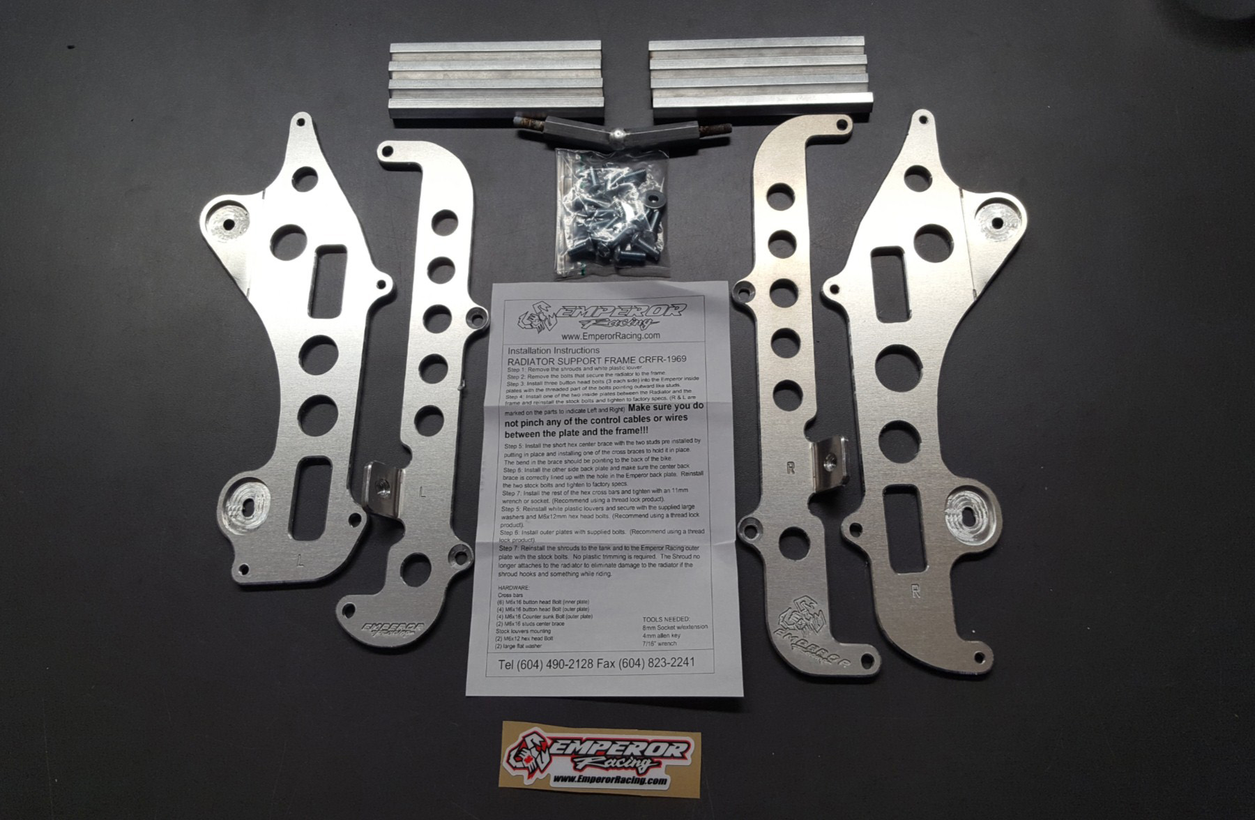 Do you want to protect your radiator without blocking the front and possibly reducing airflow? If yes, then put a frame around it. The Emperor Radiator Frame, constructed out of 3/16″ aluminum and 11mm hex bar for the cross supports and yes, you still get to run your stock radiator louvers for maximum airflow. This is the ultimate in side impact protection for your radiator.