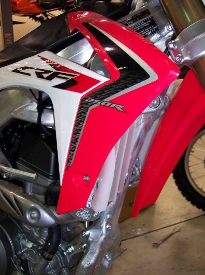 Do you want to protect your radiator without blocking the front and possibly reducing airflow? If yes, then put a frame around it. The Emperor Radiator Frame, constructed out of 3/16″ aluminum and 11mm hex bar for the cross supports and yes, you still get to run your stock radiator louvers for maximum airflow. This is the ultimate in side impact protection for your radiator.