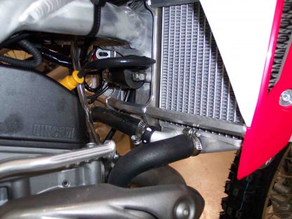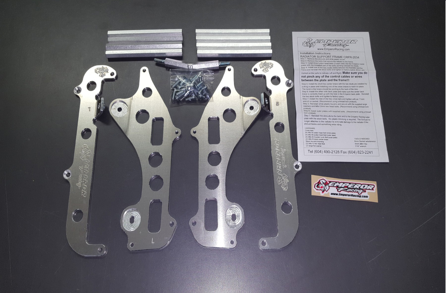 Do you want to protect your radiator without blocking the front and possibly reducing airflow? If yes, then put a frame around it. The Emperor Radiator Frame, constructed out of 3/16″ aluminum and 11mm hex bar for the cross supports and yes, you still get to run your stock radiator louvers for maximum airflow. This is the ultimate in side impact protection for your radiator.