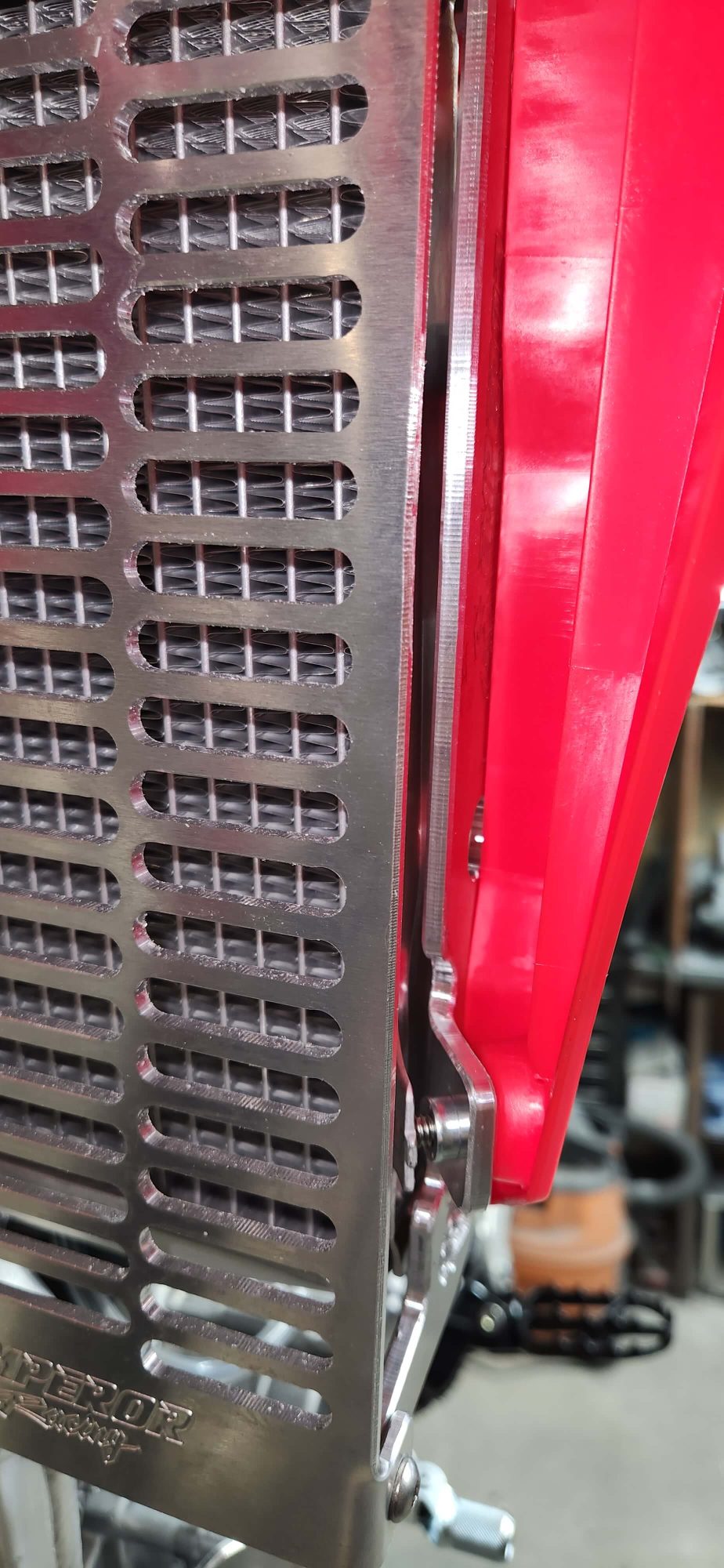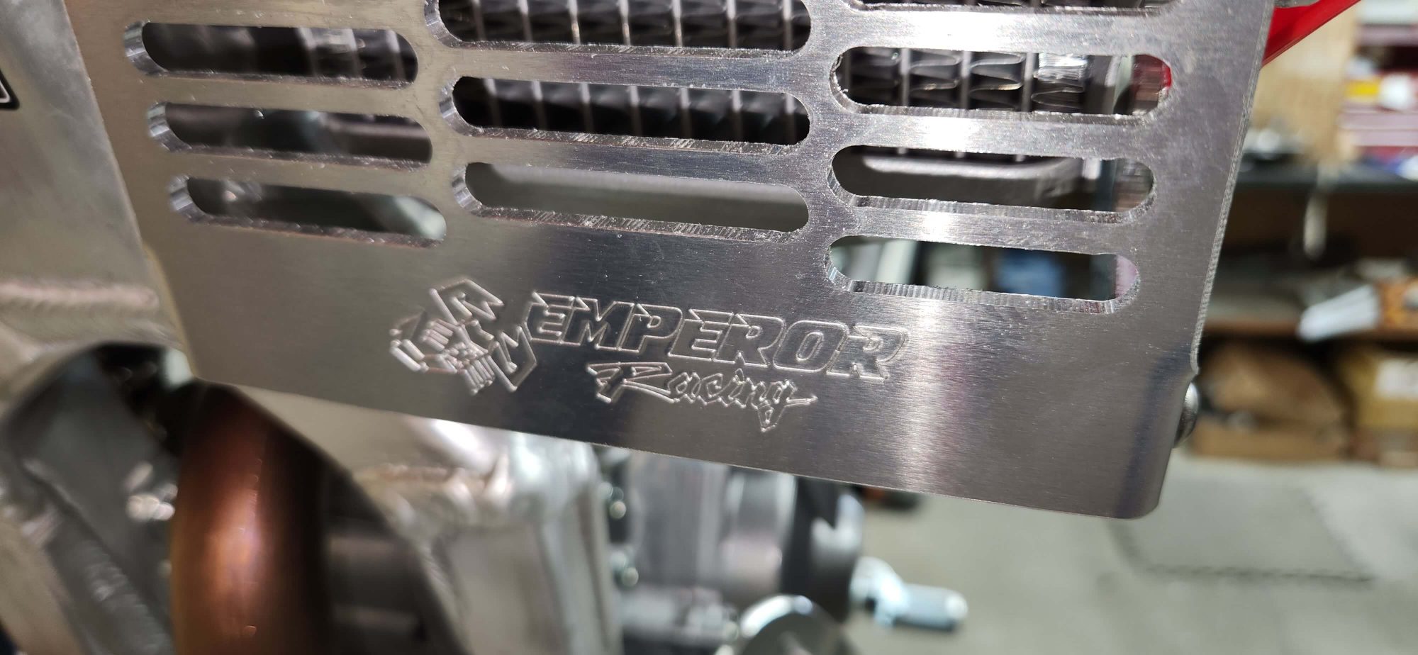 Do you want to protect your radiator without blocking the front and possibly reducing airflow? If yes, then put a frame around it. The Emperor Radiator Frame, constructed out of 3/16″ aluminum and 11mm hex bar for the cross supports and yes, you still get to run your stock radiator louvers for maximum airflow. This is the ultimate in side impact protection for your radiator.