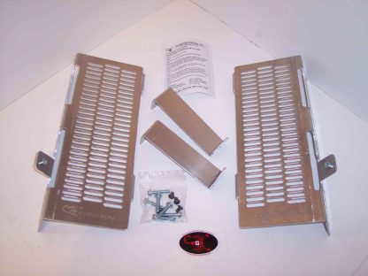 Nothing sucks more than fluids gushing out of your motorcycle in the middle of the bush, miles from rescue, just because of a poorly placed rock or tree and a little bad luck. Protect your radiator (and your bank balance) with an Emperor Radiator Guard. The Emperor Rad Guard will protect the front and side of your radiator against impact due to a crash, flying projectiles from the bike in front of you, or brush that seems to want to spear your radiator. We created a staggered horizontal punch pattern that provides maximum airflow to reduce the possibility of overheating. The best overall protection for your radiators.