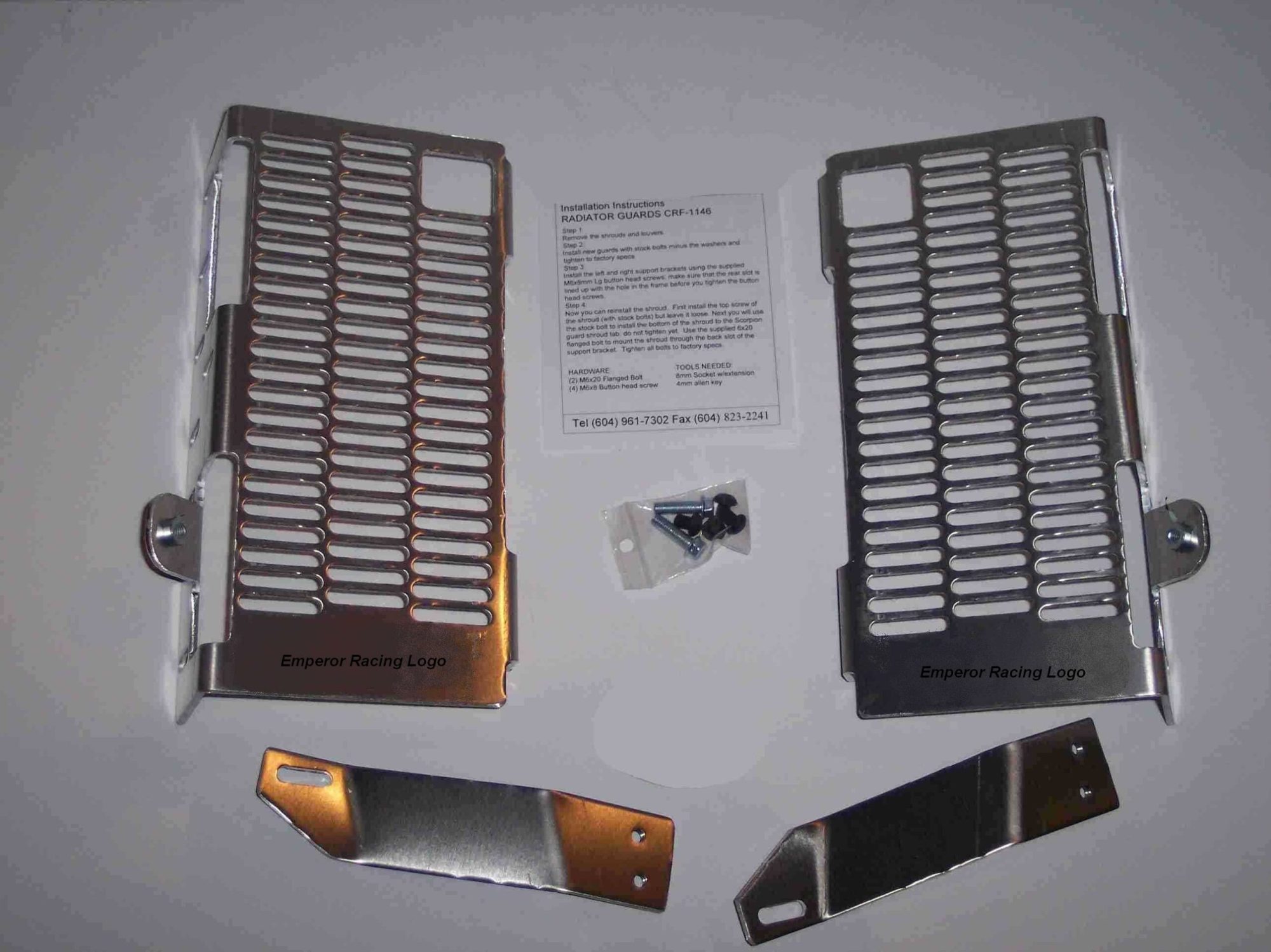 Nothing sucks more than fluids gushing out of your motorcycle in the middle of the bush, miles from rescue, just because of a poorly placed rock or tree and a little bad luck. Protect your radiator (and your bank balance) with an Emperor Radiator Guard. The Emperor Rad Guard will protect the front and side of your radiator against impact due to a crash, flying projectiles from the bike in front of you, or brush that seems to want to spear your radiator. We created a staggered horizontal punch pattern that provides maximum airflow to reduce the possibility of overheating. The best overall protection for your radiators.