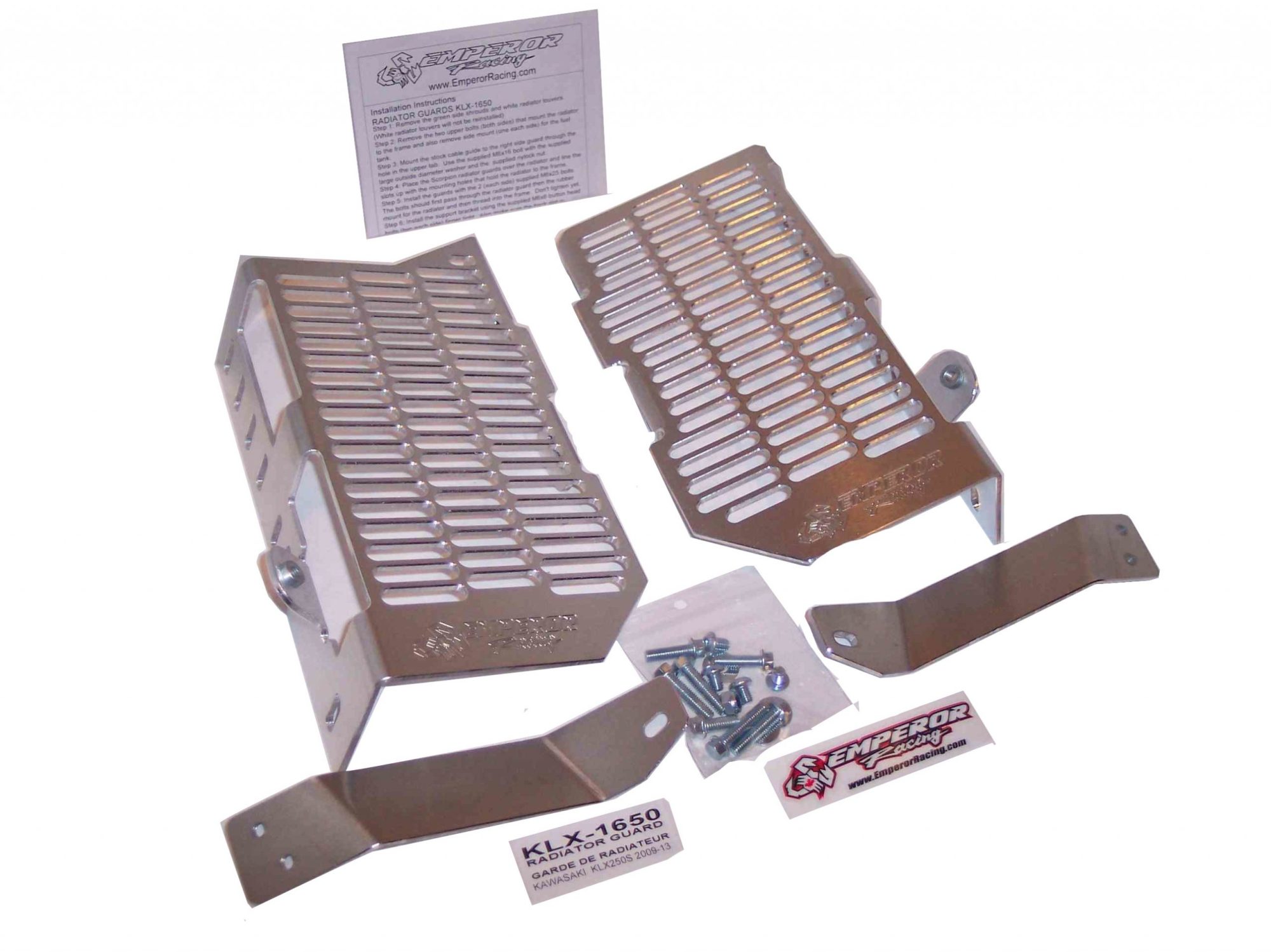 Nothing sucks more than fluids gushing out of your motorcycle in the middle of the bush, miles from rescue, just because of a poorly placed rock or tree and a little bad luck. Protect your radiator (and your bank balance) with an Emperor Radiator Guard. The Emperor Rad Guard will protect the front and side of your radiator against impact due to a crash, flying projectiles from the bike in front of you, or brush that seems to want to spear your radiator. We created a staggered horizontal punch pattern that provides maximum airflow to reduce the possibility of overheating. The best overall protection for your radiators.