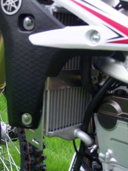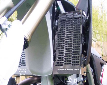Nothing sucks more than fluids gushing out of your motorcycle in the middle of the bush, miles from rescue, just because of a poorly placed rock or tree and a little bad luck. Protect your radiator (and your bank balance) with an Emperor Radiator Guard. The Emperor Rad Guard will protect the front and side of your radiator against impact due to a crash, flying projectiles from the bike in front of you, or brush that seems to want to spear your radiator. We created a staggered horizontal punch pattern that provides maximum airflow to reduce the possibility of overheating. The best overall protection for your radiators.