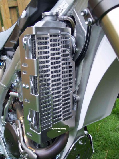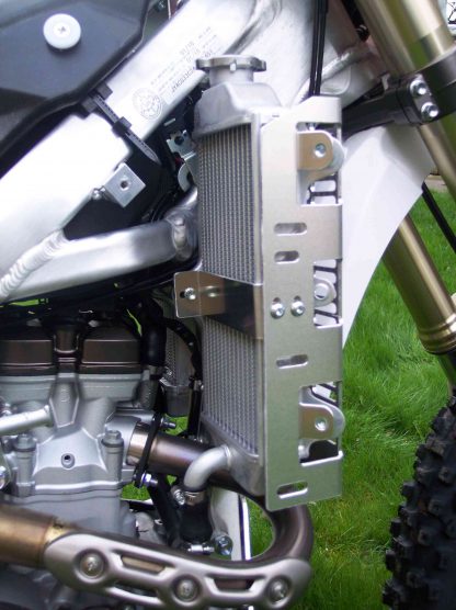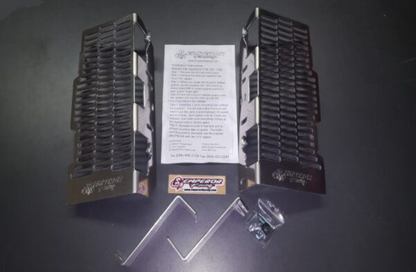 Nothing sucks more than fluids gushing out of your motorcycle in the middle of the bush, miles from rescue, just because of a poorly placed rock or tree and a little bad luck. Protect your radiator (and your bank balance) with an Emperor Radiator Guard. The Emperor Rad Guard will protect the front and side of your radiator against impact due to a crash, flying projectiles from the bike in front of you, or brush that seems to want to spear your radiator. We created a staggered horizontal punch pattern that provides maximum airflow to reduce the possibility of overheating. The best overall protection for your radiators.