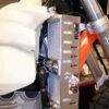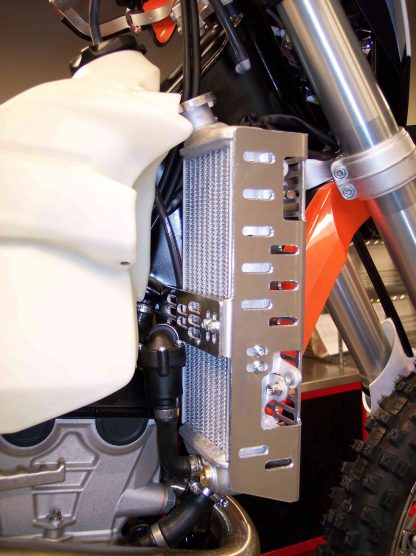 Nothing sucks more than fluids gushing out of your motorcycle in the middle of the bush, miles from rescue, just because of a poorly placed rock or tree and a little bad luck. Protect your radiator (and your bank balance) with an Emperor Radiator Guard. The Emperor Rad Guard will protect the front and side of your radiator against impact due to a crash, flying projectiles from the bike in front of you, or brush that seems to want to spear your radiator. We created a staggered horizontal punch pattern that provides maximum airflow to reduce the possibility of overheating. The best overall protection for your radiators.