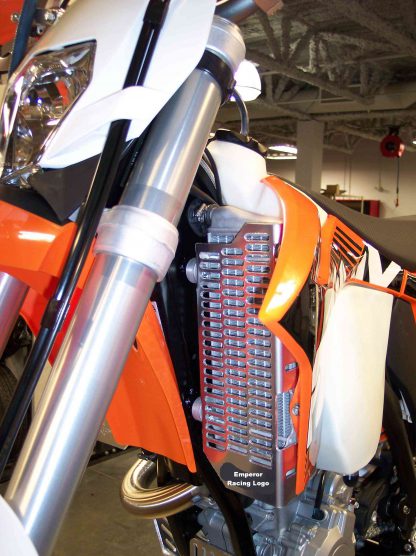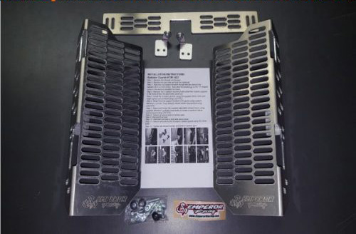 Nothing sucks more than fluids gushing out of your motorcycle in the middle of the bush, miles from rescue, just because of a poorly placed rock or tree and a little bad luck. Protect your radiator (and your bank balance) with an Emperor Radiator Guard. The Emperor Rad Guard will protect the front and side of your radiator against impact due to a crash, flying projectiles from the bike in front of you, or brush that seems to want to spear your radiator. We created a staggered horizontal punch pattern that provides maximum airflow to reduce the possibility of overheating. The best overall protection for your radiators.