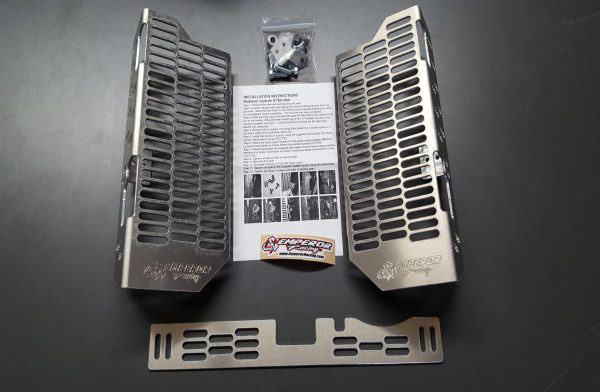 Nothing sucks more than fluids gushing out of your motorcycle in the middle of the bush, miles from rescue, just because of a poorly placed rock or tree and a little bad luck. Protect your radiator (and your bank balance) with an Emperor Radiator Guard. The Emperor Rad Guard will protect the front and side of your radiator against impact due to a crash, flying projectiles from the bike in front of you, or brush that seems to want to spear your radiator. We created a staggered horizontal punch pattern that provides maximum airflow to reduce the possibility of overheating. The best overall protection for your radiators.