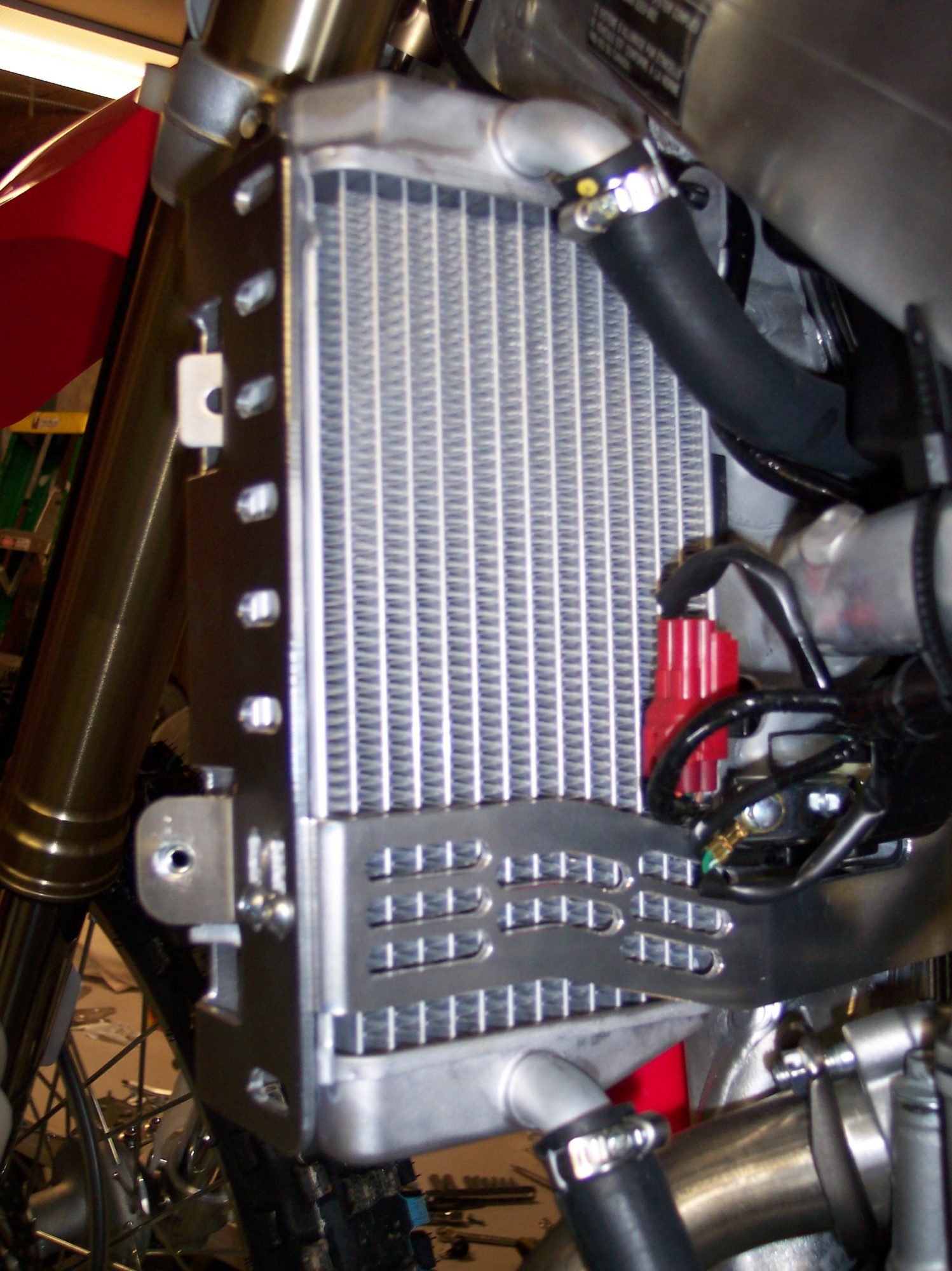 Nothing sucks more than fluids gushing out of your motorcycle in the middle of the bush, miles from rescue, just because of a poorly placed rock or tree and a little bad luck. Protect your radiator (and your bank balance) with an Emperor Radiator Guard. The Emperor Rad Guard will protect the front and side of your radiator against impact due to a crash, flying projectiles from the bike in front of you, or brush that seems to want to spear your radiator. We created a staggered horizontal punch pattern that provides maximum airflow to reduce the possibility of overheating. The best overall protection for your radiators.