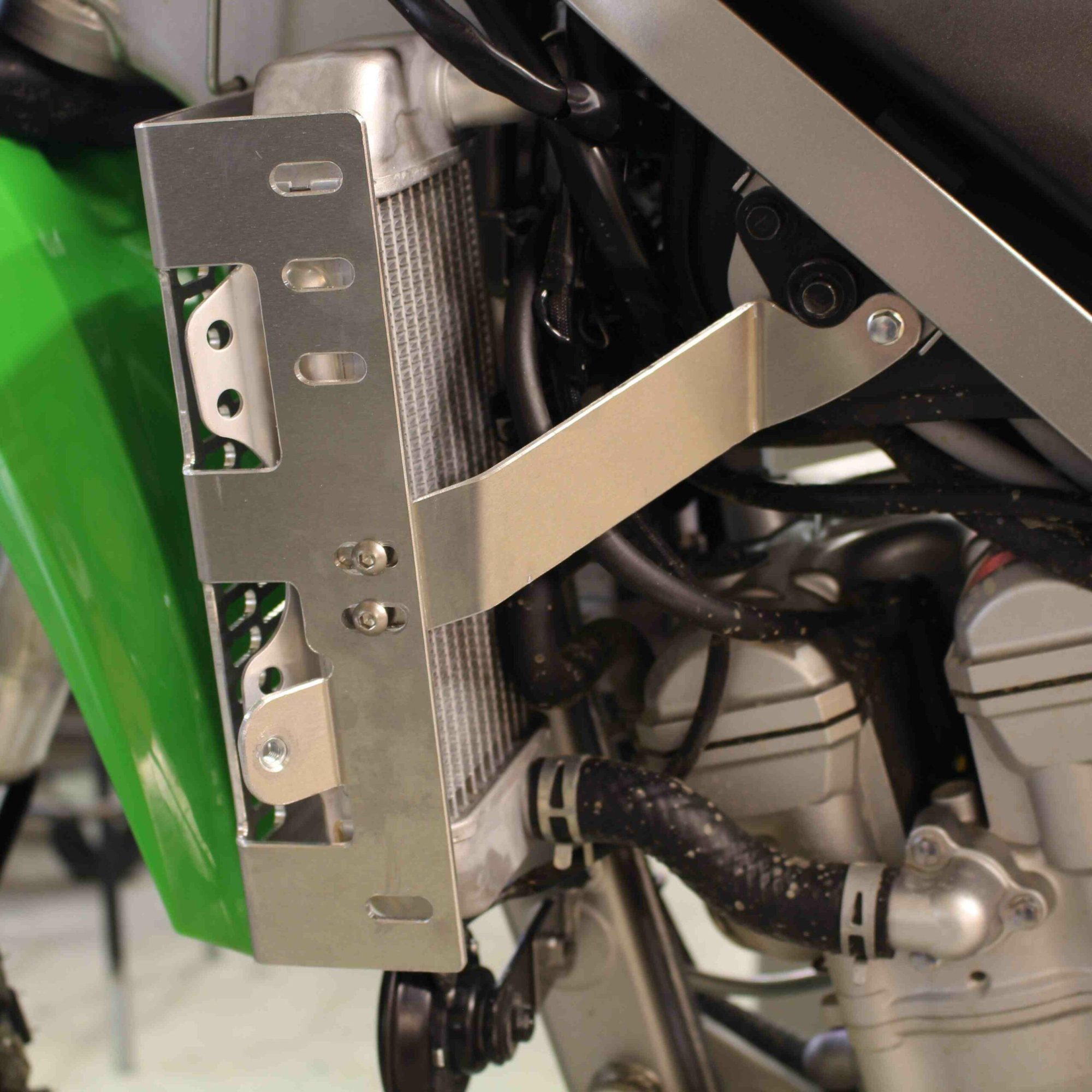 Nothing sucks more than fluids gushing out of your motorcycle in the middle of the bush, miles from rescue, just because of a poorly placed rock or tree and a little bad luck. Protect your radiator (and your bank balance) with an Emperor Radiator Guard. The Emperor Rad Guard will protect the front and side of your radiator against impact due to a crash, flying projectiles from the bike in front of you, or brush that seems to want to spear your radiator. We created a staggered horizontal punch pattern that provides maximum airflow to reduce the possibility of overheating. The best overall protection for your radiators.