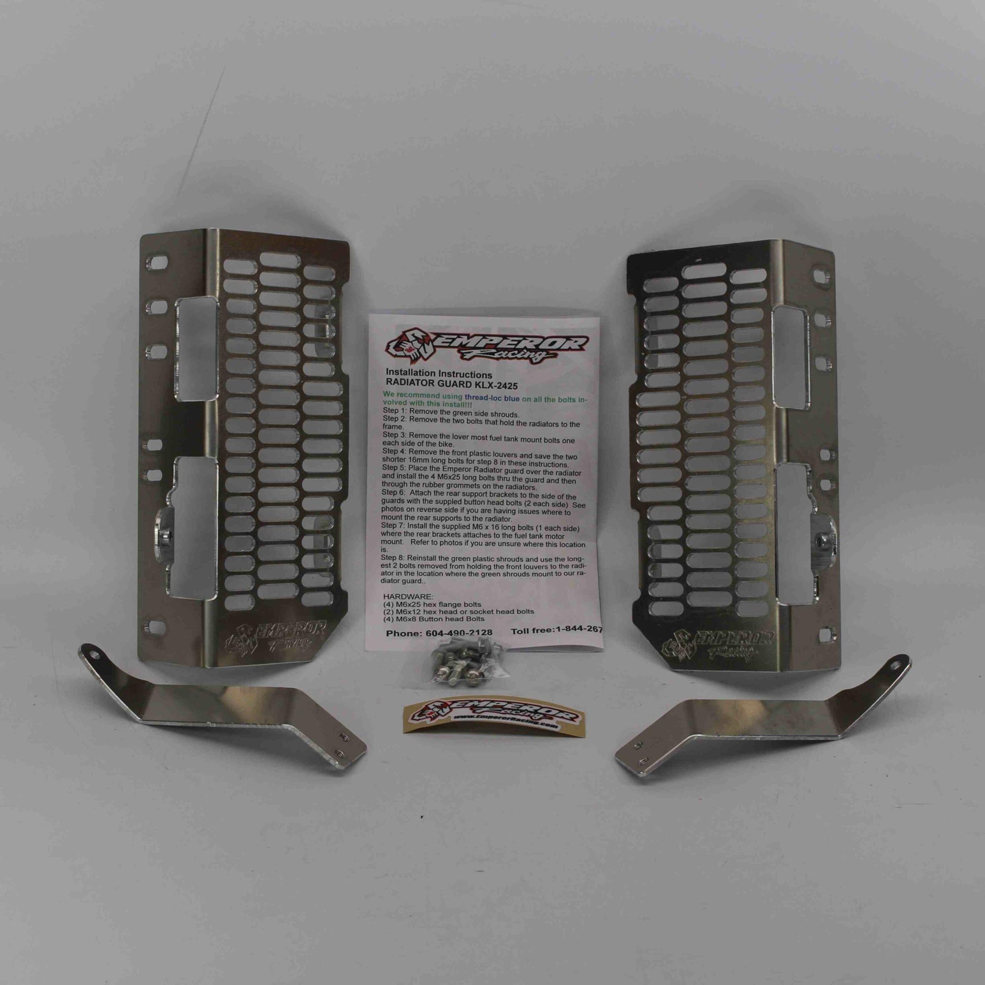 Nothing sucks more than fluids gushing out of your motorcycle in the middle of the bush, miles from rescue, just because of a poorly placed rock or tree and a little bad luck. Protect your radiator (and your bank balance) with an Emperor Radiator Guard. The Emperor Rad Guard will protect the front and side of your radiator against impact due to a crash, flying projectiles from the bike in front of you, or brush that seems to want to spear your radiator. We created a staggered horizontal punch pattern that provides maximum airflow to reduce the possibility of overheating. The best overall protection for your radiators.