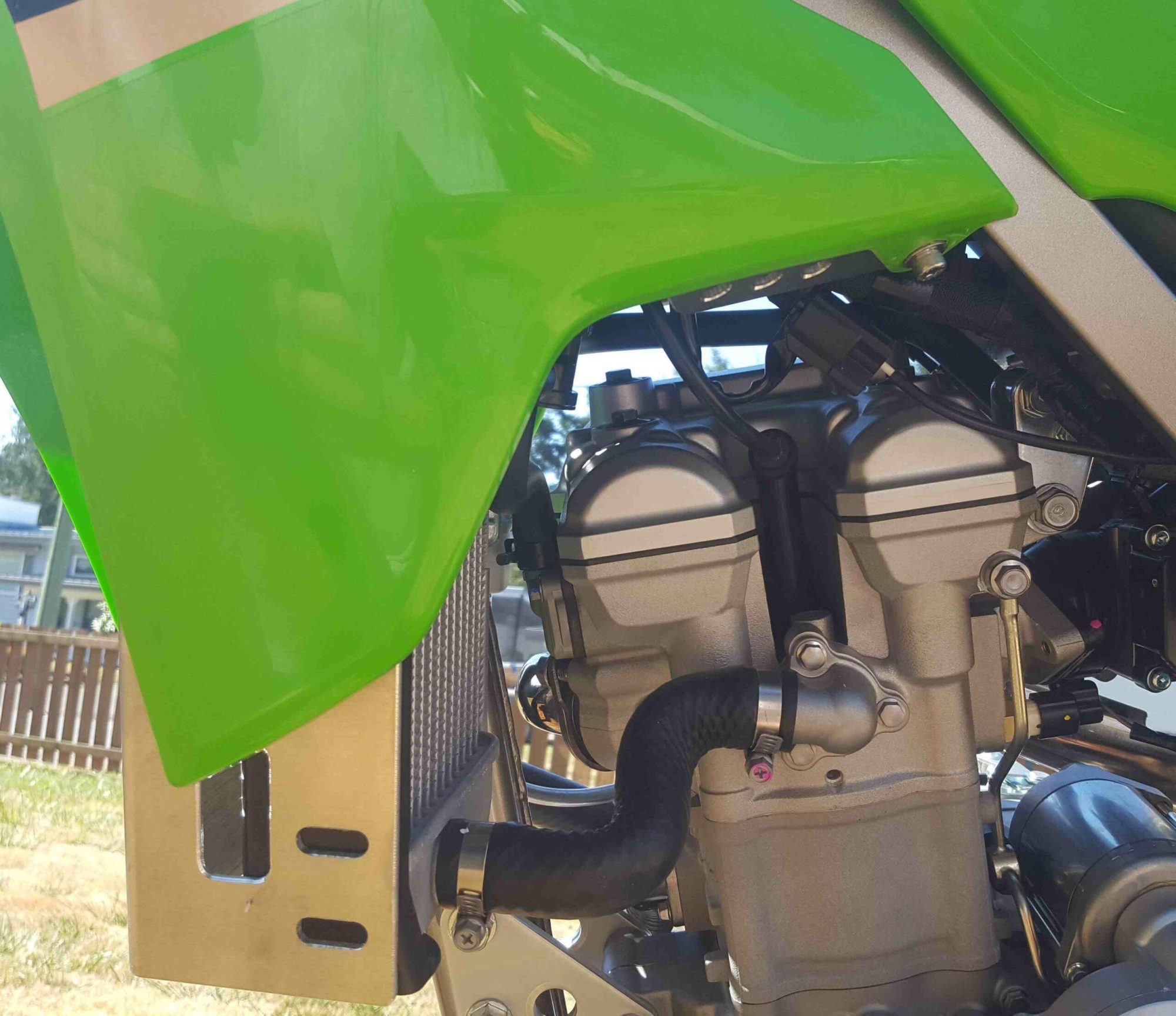 Nothing sucks more than fluids gushing out of your motorcycle in the middle of the bush, miles from rescue, just because of a poorly placed rock or tree and a little bad luck. Protect your radiator (and your bank balance) with an Emperor Radiator Guard. The Emperor Rad Guard will protect the front and side of your radiator against impact due to a crash, flying projectiles from the bike in front of you, or brush that seems to want to spear your radiator. We created a staggered horizontal punch pattern that provides maximum airflow to reduce the possibility of overheating. The best overall protection for your radiators.